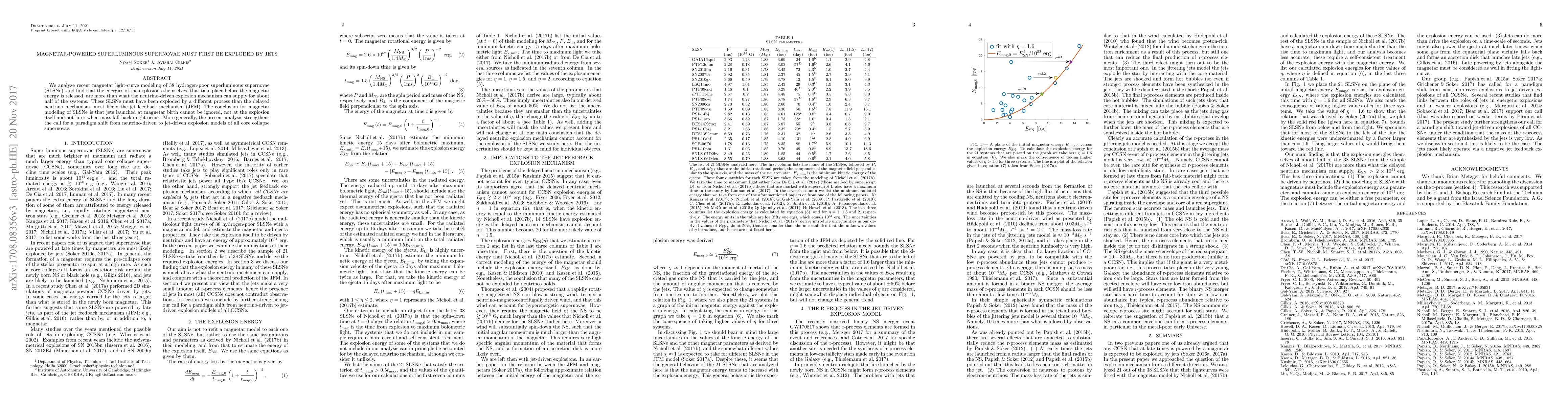 We analyze recent magnetar light-curve modeling of 38 hydrogen-poor superluminous supernovae (SLSNe), and find that the energies of the explosions themselves, that take place before the magnetar energy is released, are more than what the neutrino-driven explosion mechanism can supply for about half of the systems. These SLSNe must have been exploded by a different process than the delayed neutrino mechanism, most likely the jet feedback mechanism (JFM). The conclusion for magnetar modeling of SLSNe is that jets launched at magnetar birth cannot be ignored, not at the explosion itself and not later when mass fall-back might occur. More generally, the present analysis strengthens the call for a paradigm shift from neutrino-driven to jet-driven explosion models of all core collapse supernovae.