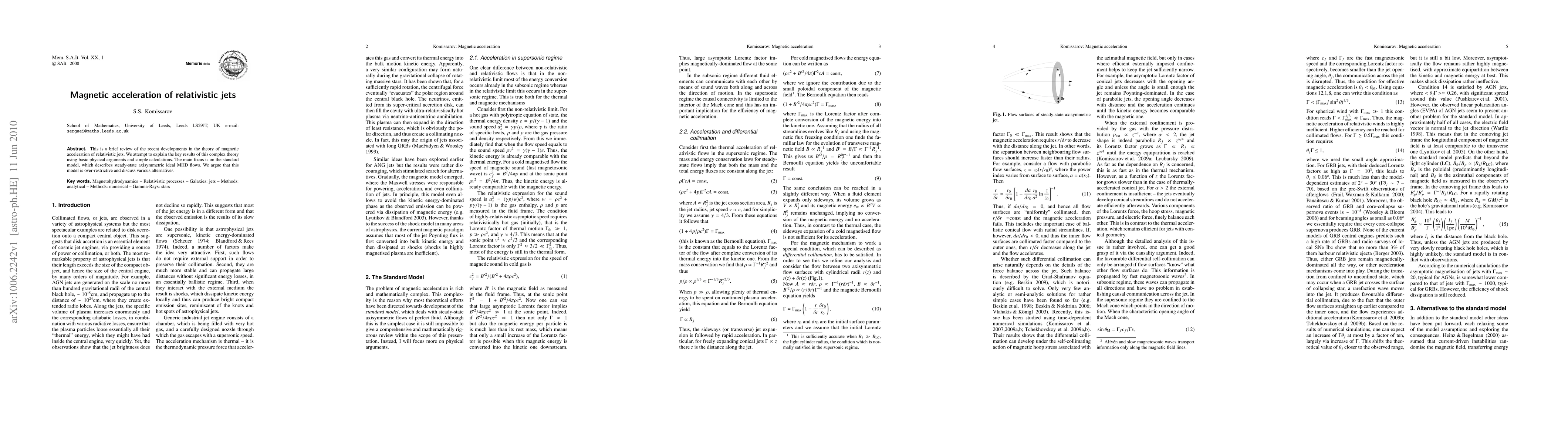 This review discusses recent developments in magnetic acceleration of relativistic jets, explaining key results with basic physical arguments, while also highlighting the limitations of the standard model and proposing alternative approaches.