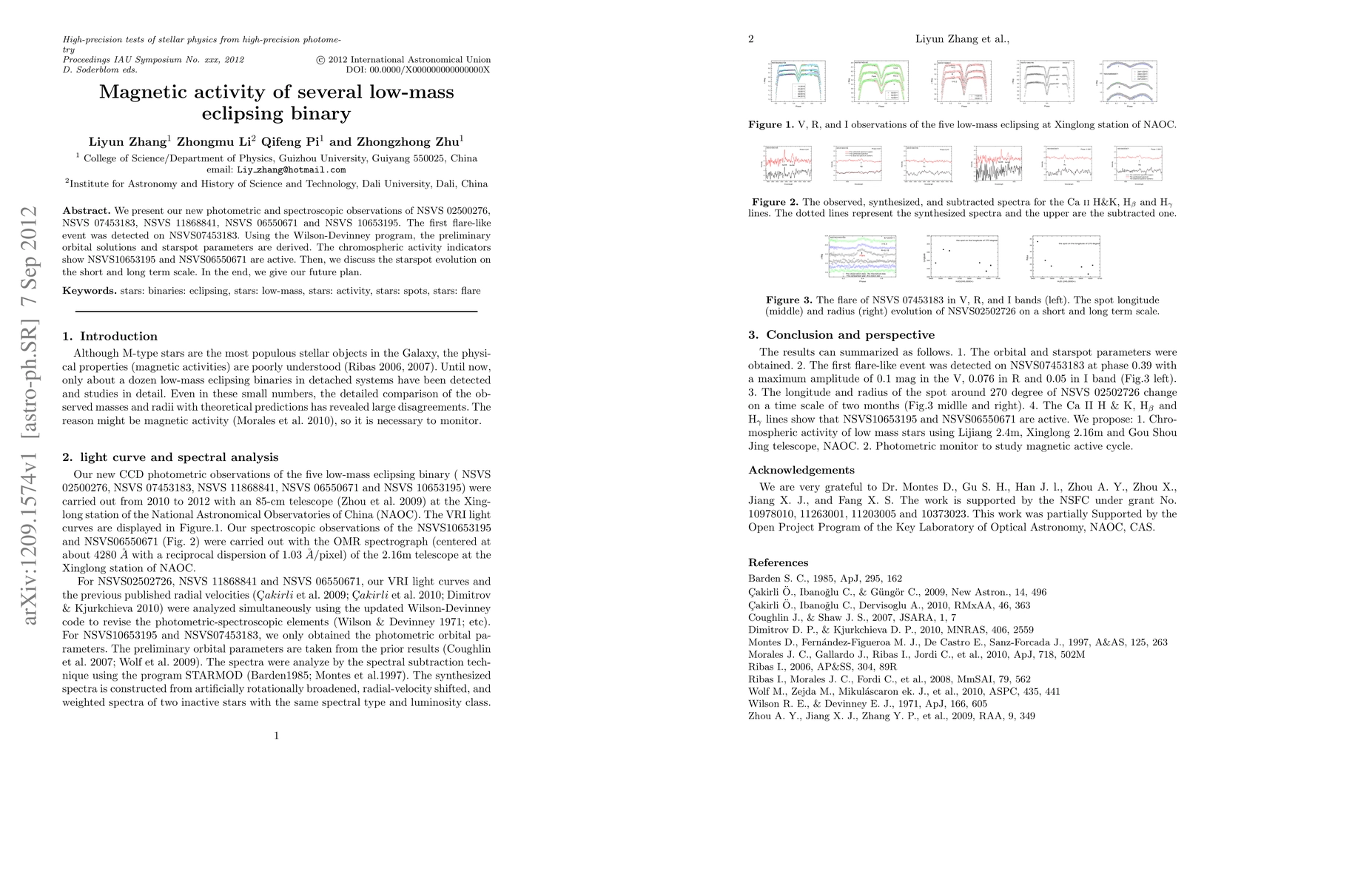 Researchers observed magnetic activity in five low-mass eclipsing binary stars, including a first-ever flare-like event on NSVS 07453183, and discussed the long-term evolution of starspots in these systems.