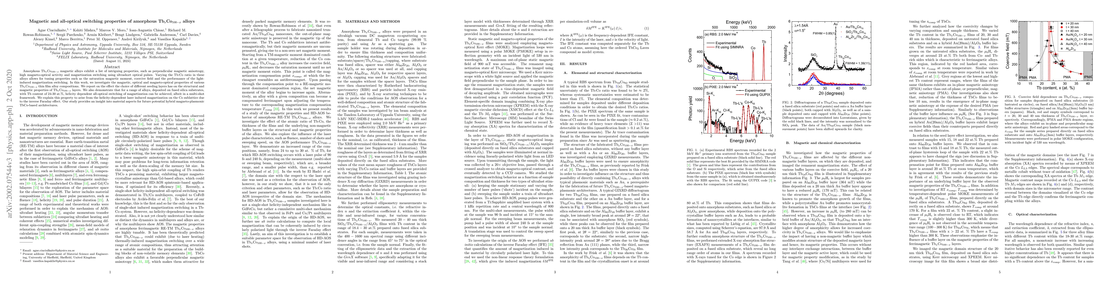 Researchers investigate magnetic and optical properties of amorphous TbCo alloys, finding that varying the alloy composition can tune properties such as magnetization switching using ultrashort optical pulses.