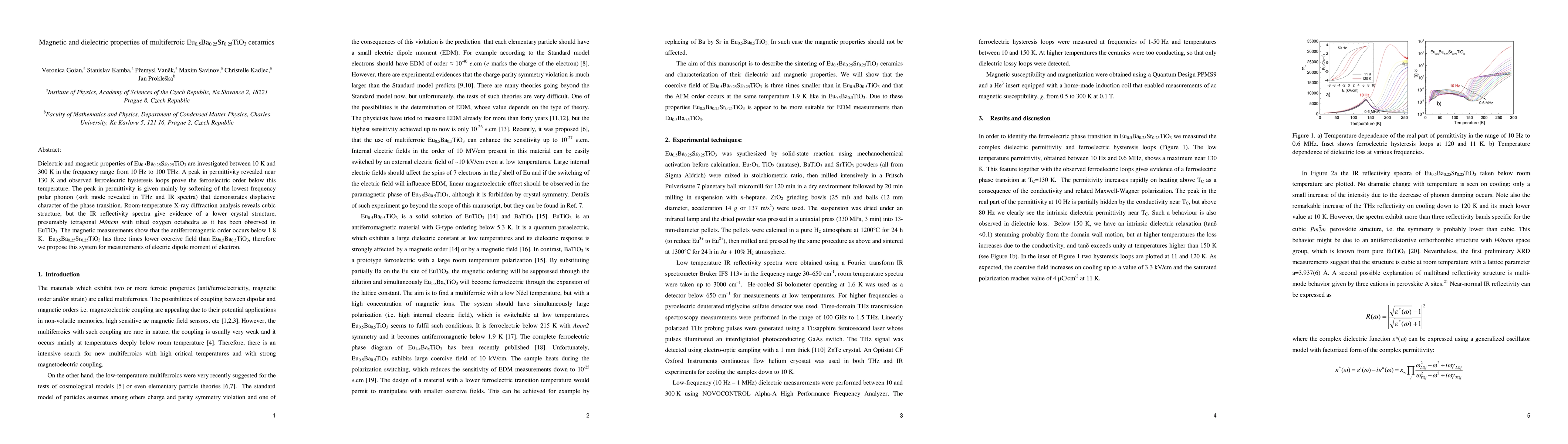 Researchers investigate Eu0.5Ba0.25Sr0.25TiO3 ceramics, finding a ferroelectric phase transition at 130 K with a low coercive field, suitable for measuring electric dipole moment of electrons.
