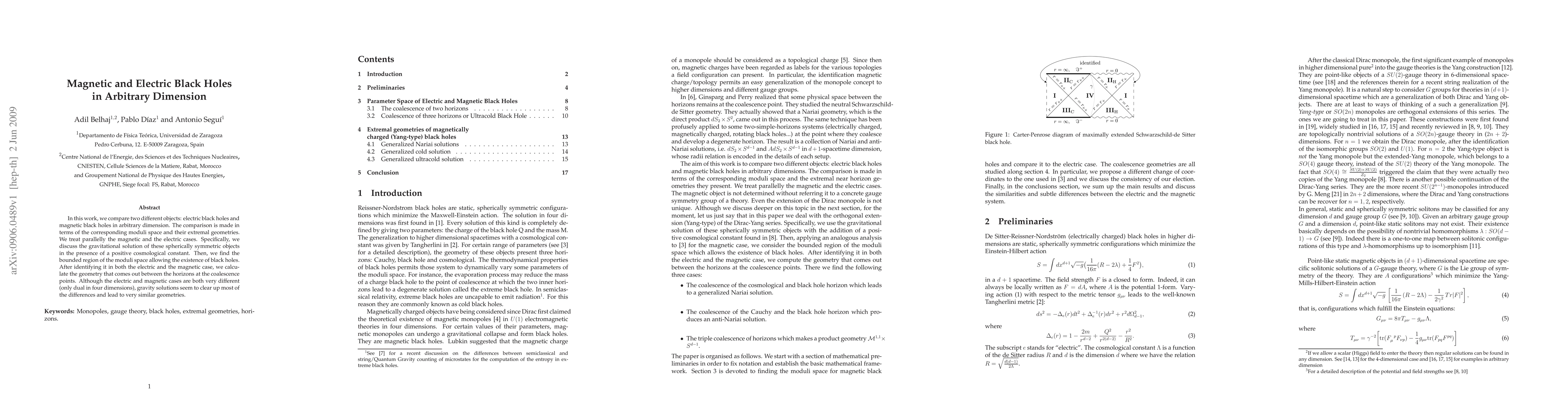 This paper compares electric and magnetic black holes in arbitrary dimensions, focusing on their moduli spaces and extremal geometries. It finds that despite fundamental differences, the gravitational solutions lead to very similar geometries between the horizons, especially in the presence of a positive cosmological constant.