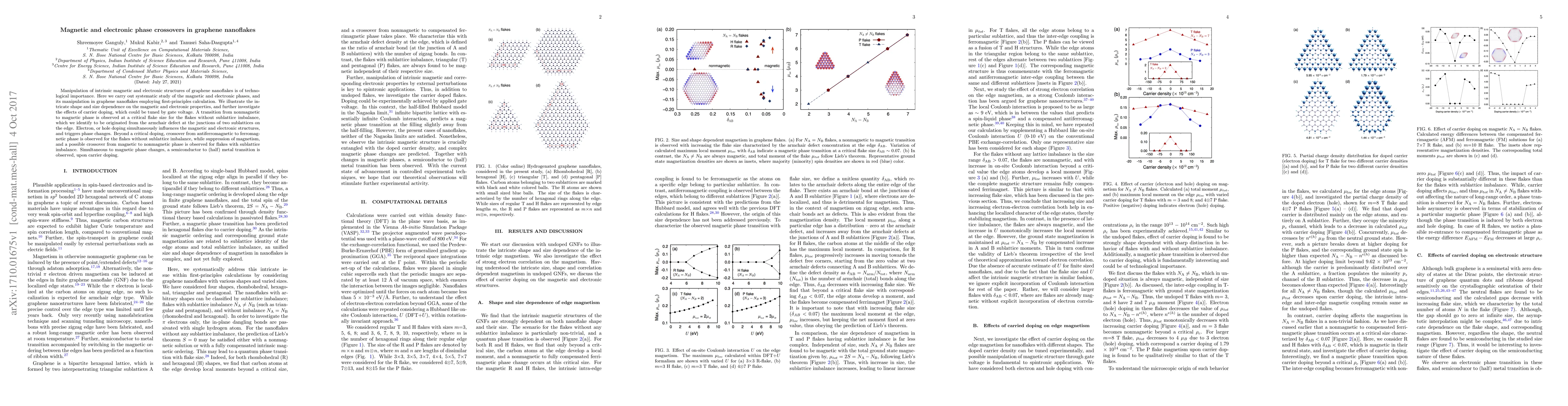 This study investigates the magnetic and electronic phase transitions in graphene nanoflakes using first-principles calculations, revealing size-dependent magnetic behavior and the influence of carrier doping on phase changes, including transitions from nonmagnetic to magnetic phases and semiconductor to (half) metal transitions.