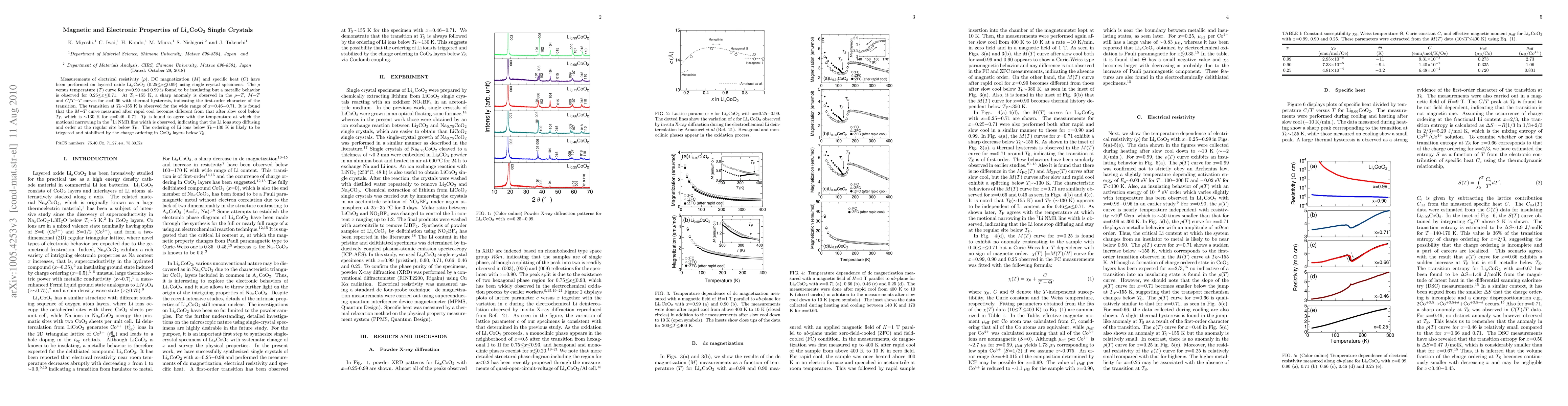 Measurements of electrical resistivity ($\rho$), DC magnetization ($M$) and specific heat ($C$) have been performed on layered oxide Li$_x$CoO$_2$ (0.25$\leq$$x$$\leq$0.99) using single crystal specimens. The $\rho$ versus temperature ($T$) curve for $x$=0.90 and 0.99 is found to be insulating but a metallic behavior is observed for 0.25$\leq$$x$$\leq$0.71. At $T_{\rm S}$$\sim$155 K, a sharp anomaly is observed in the $\rho$$-$$T$, $M$$-$$T$ and $C$$/$$T$$-$$T$ curves for $x$=0.66 with thermal hysteresis, indicating the first-order charactor of the transition. The transition at $T_{\rm S}$$\sim$155 K is observed for the wide range of $x$=0.46$-$0.71. It is found that the $M$$-$$T$ curve measured after rapid cool becomes different from that after slow cool below $T_{\rm F}$, which is $\sim$130 K for $x$=0.46$-$0.71. $T_{\rm F}$ is found to agree with the temperature at which the motional narrowing in the $^7$Li NMR line width is observed, indicating that the Li ions stop diffusing and order at the regular site below $T_{\rm F}$. The ordering of Li ions below $T_{\rm F}$$\sim$130 K is likely to be triggered and stabilized by the charge ordering in CoO$_2$ layers below $T_{\rm S}$.