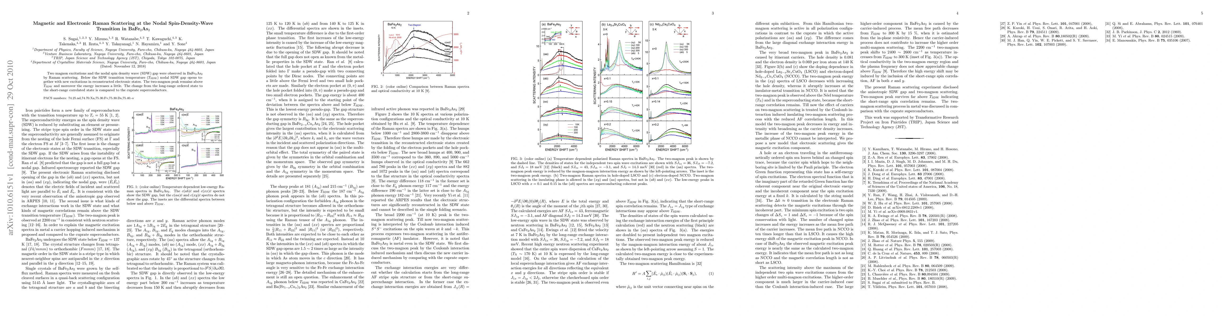 This study reveals magnetic and electronic Raman scattering in BaFe2As2, showing two magnon excitations and a nodal spin-density-wave gap below the transition temperature. The nodal SDW gap and new electronic states form upon transitioning, while the two-magnon peak persists above the transition, hinting at similarities to cuprate superconductors.
