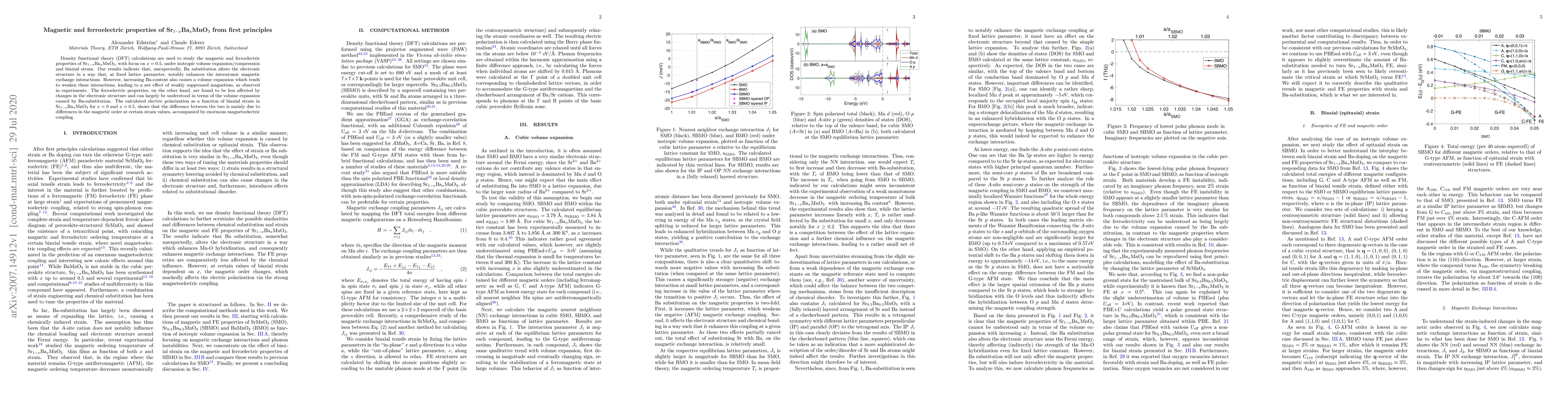 Researchers used density functional theory to study the magnetic and ferroelectric properties of a specific manganese oxide material under different strain conditions, finding that Ba substitution strengthens magnetic interactions but weakens them due to volume expansion.