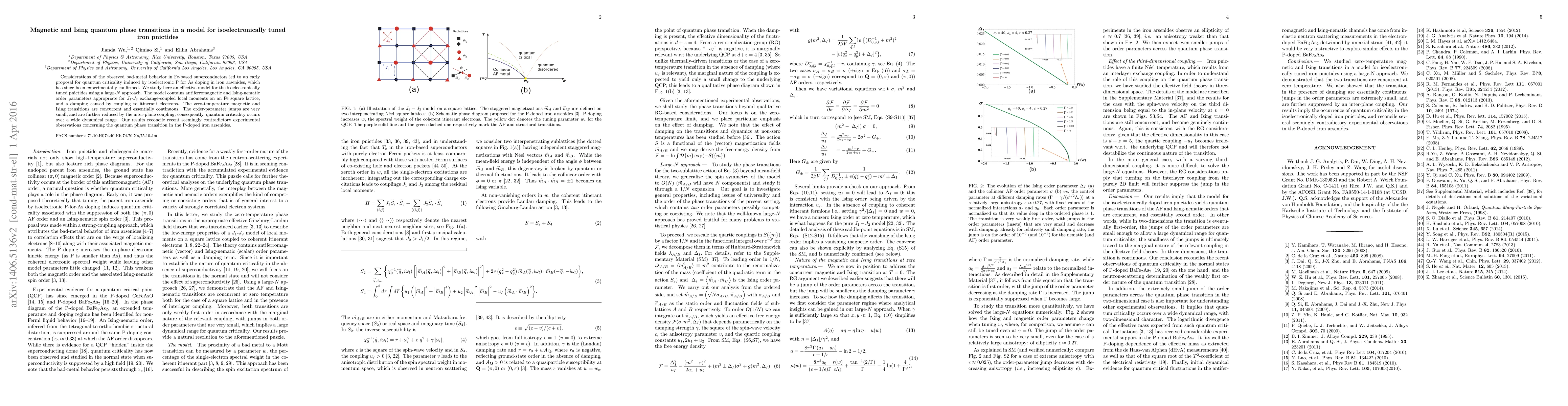 This paper investigates an effective model for isoelectronically tuned iron pnictides using a large-$N$ approach, focusing on magnetic and Ising quantum phase transitions. The study reveals concurrent and continuous zero-temperature transitions with minimal order-parameter jumps, indicating a wide range of quantum criticality in P-doped iron arsenides.