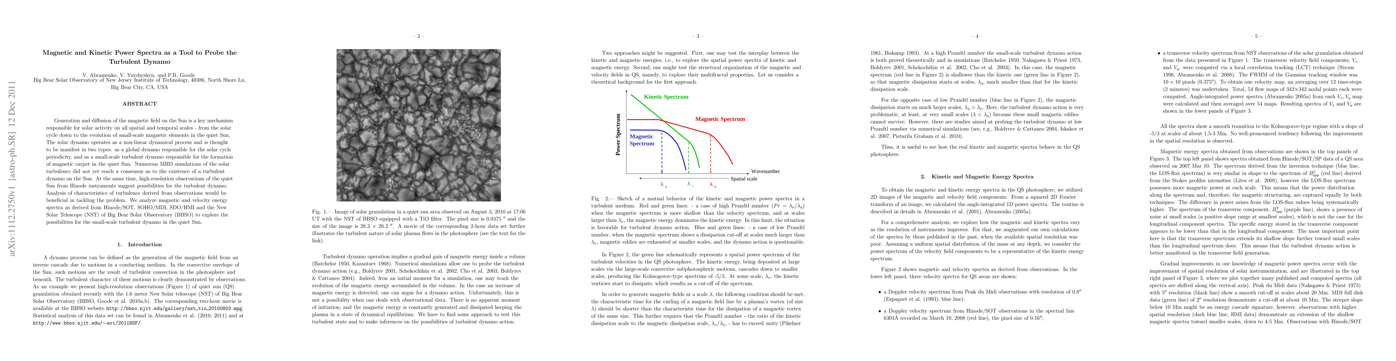 Generation and diffusion of the magnetic field on the Sun is a key mechanism responsible for solar activity on all spatial and temporal scales - from the solar cycle down to the evolution of small-scale magnetic elements in the quiet Sun. The solar dynamo operates as a non-linear dynamical process and is thought to be manifest in two types: as a global dynamo responsible for the solar cycle periodicity, and as a small-scale turbulent dynamo responsible for the formation of magnetic carpet in the quiet Sun. Numerous MHD simulations of the solar turbulence did not yet reach a consensus as to the existence of a turbulent dynamo on the Sun. At the same time, high-resolution observations of the quiet Sun from Hinode instruments suggest possibilities for the turbulent dynamo. Analysis of characteristics of turbulence derived from observations would be beneficial in tackling the problem. We analyse magnetic and velocity energy spectra as derived from Hinode/SOT, SOHO/MDI, SDO/HMI and the New Solar Telescope (NST) of Big Bear Solar Observatory (BBSO) to explore the possibilities for the small-scale turbulent dynamo in the quiet Sun.