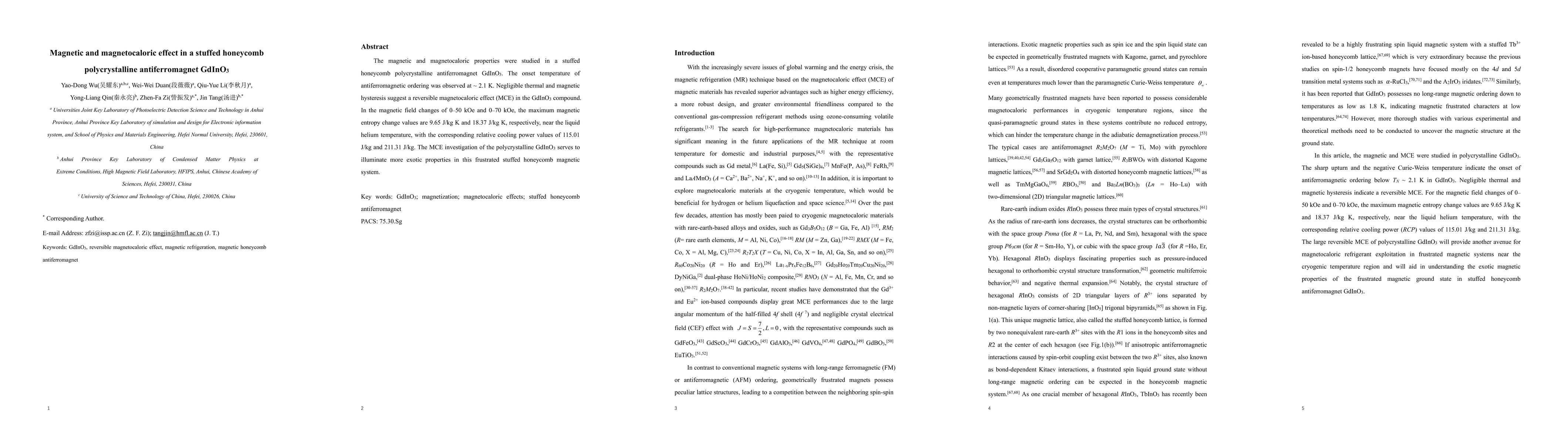 The magnetic and magnetocaloric (MCE) properties were studied in a stuffed honeycomb antiferromagnet GdInO3 polycrystalline. No long-range magnetic ordering was observed with only a sharp upturn in the temperature dependent magnetization curves at TN ~ 2.1 K. The large value of frustration index value ~ 5.0 suggests short-range antiferromagnetic interactions existing between the Gd3+ moments in this frustrated magnetic system. Negligible thermal and magnetic hysteresis suggest a second-order feature of phase transition and a reversible magnetocaloric effect (MCE) in GdInO3 compound. In the magnetic field changes of 0-50 kOe and 0-70 kOe, the maximum magnetic entropy change values are 9.31 J/kg K and 17.53 J/kg K near the liquid helium temperature, with the corresponding RCP values of 106.61 and 196.38 J/kg, respectively. The relative lower MCE performance of GdInO3 polycrystalline than the other Gd-based magnetocaloric effect is understood by the high magnetic frustration in this system. Our investigation results reveal GdInO3 polycrystalline has a large reversible MCE, which not only provides another possibility of exploiting magnetocaloric refrigerants in the frustrated magnetic systems near the cryogenic temperature region, but also serves to excavate more exotic properties in the frustrated stuffed honeycomb magnetic systems.
