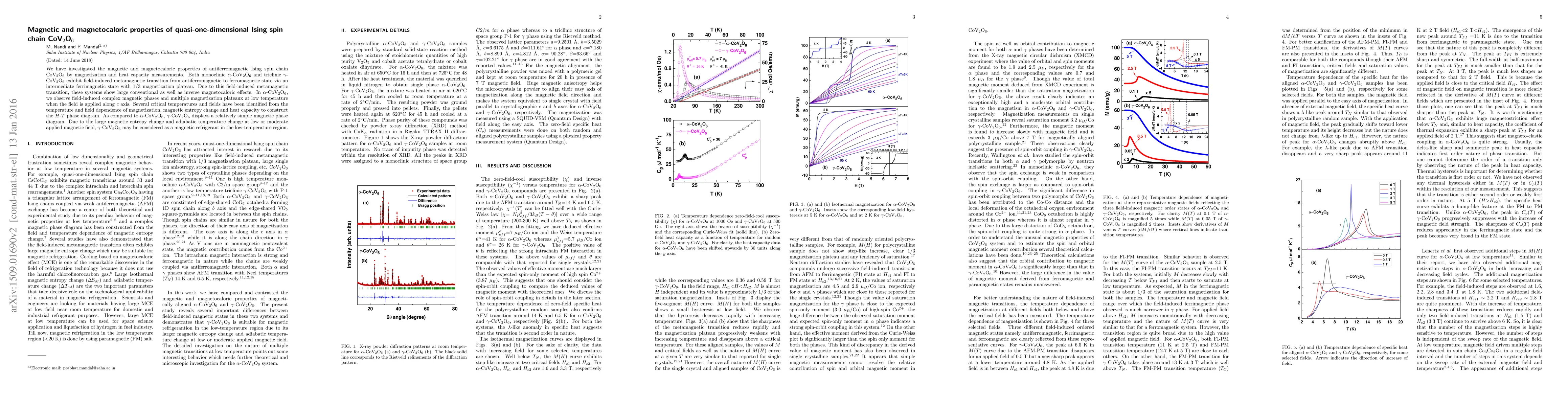 Researchers investigated the magnetic and magnetocaloric properties of CoV2O6, a quasi-one-dimensional Ising spin chain material. They found that it exhibits large conventional and inverse magnetocaloric effects due to a field-induced metamagnetic transition.