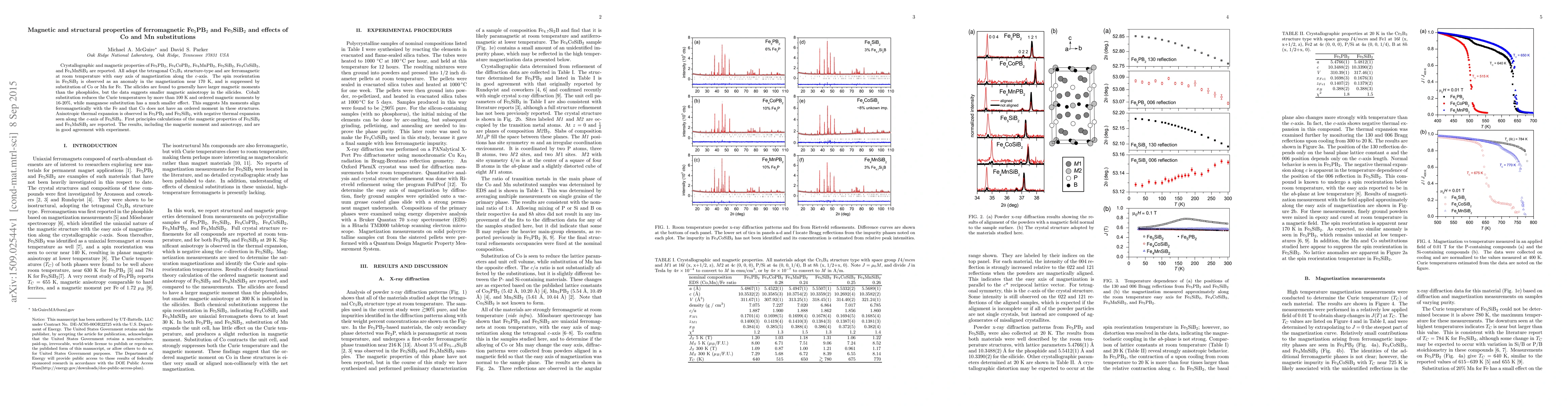 Crystallographic and magnetic properties of Fe5PB2, Fe4CoPB2, Fe4MnPB2, Fe5SiB2, Fe4CoSiB2, and Fe4MnSiB2 are reported. All adopt the tetragonal Cr5B3 structure-type and are ferromagnetic at room temperature with easy axis of magnetization along the c-axis. The spin reorientation in Fe5SiB2 is observed as an anomaly in the magnetization near 170 K, and is suppressed by substitution of Co or Mn for Fe. The silicides are found to generally have larger magnetic moments than the phosphides, but the data suggests smaller magnetic anisotropy in the silicides. Cobalt substitution reduces the Curie temperatures by more than 100 K and ordered magnetic moments by 16-20%, while manganese substitution has a much smaller effect. This suggests Mn moments align ferromagnetically with the Fe and that Co does not have an ordered moment in these structures. Anisotropic thermal expansion is observed in Fe5PB2 and Fe5SiB2, with negative thermal expansion seen along the c-axis of Fe5SiB2. First principles calculations of the magnetic properties of Fe5SiB2 and Fe4MnSiB2 are reported. The results, including the magnetic moment and anisotropy, and are in good agreement with experiment.