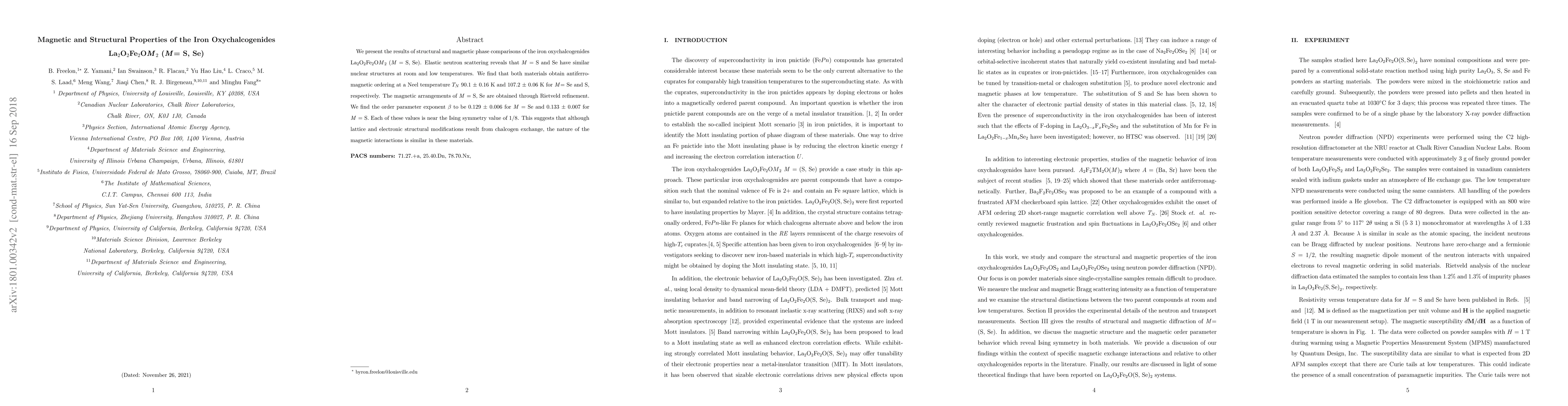 We present the results of structural and magnetic phase comparisons of the iron oxychalcogenides La$_{2}$O$_{2}$Fe$_{2}$O$M$$_{2}$ ($M$ = S, Se). Elastic neutron scattering reveals that $M$ = S and Se have similar nuclear structures at room and low temperatures. We find that both materials obtain antiferromagnetic ordering at a Neel temperature $T_{N}$ 90.1 $\pm$ 0.16 K and 107.2 $\pm$ 0.06 K for $M$= Se and S, respectively. The magnetic arrangements of $M$ = S, Se are obtained through Rietveld refinement. We find the order parameter exponent $\beta$ to be 0.129 $\pm$ 0.006 for $M$ = Se and 0.133 $\pm$ 0.007 for $M$ = S. Each of these values is near the Ising symmetry value of 1/8. This suggests that although lattice and electronic structural modifications result from chalcogen exchange, the nature of the magnetic interactions is similar in these materials.