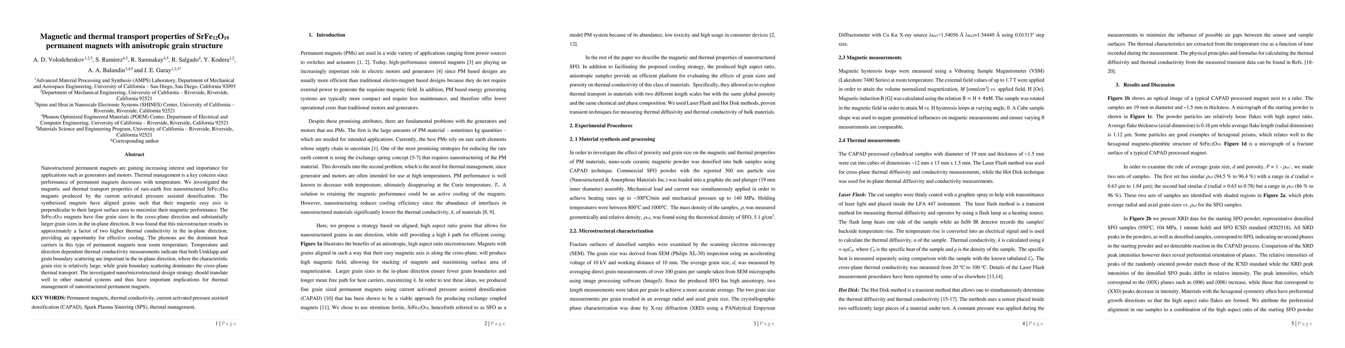 This study investigates the magnetic and thermal transport properties of rare-earth free nanostructured SrFe12O19 magnets with anisotropic grain structure, finding significantly higher in-plane thermal conductivity due to effective phonon transport, which can enhance cooling and performance in applications like generators and motors.