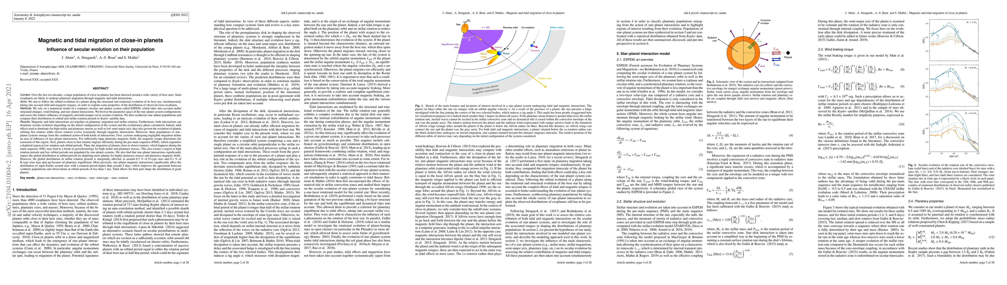 This paper investigates the magnetic and tidal migration of close-in planets and their secular evolution, using a model that considers both types of interactions. It finds that the dominant interaction type depends on the system's initial configuration and evolutionary phase, significantly impacting the distribution of observed planets and challenging gyrochronology.