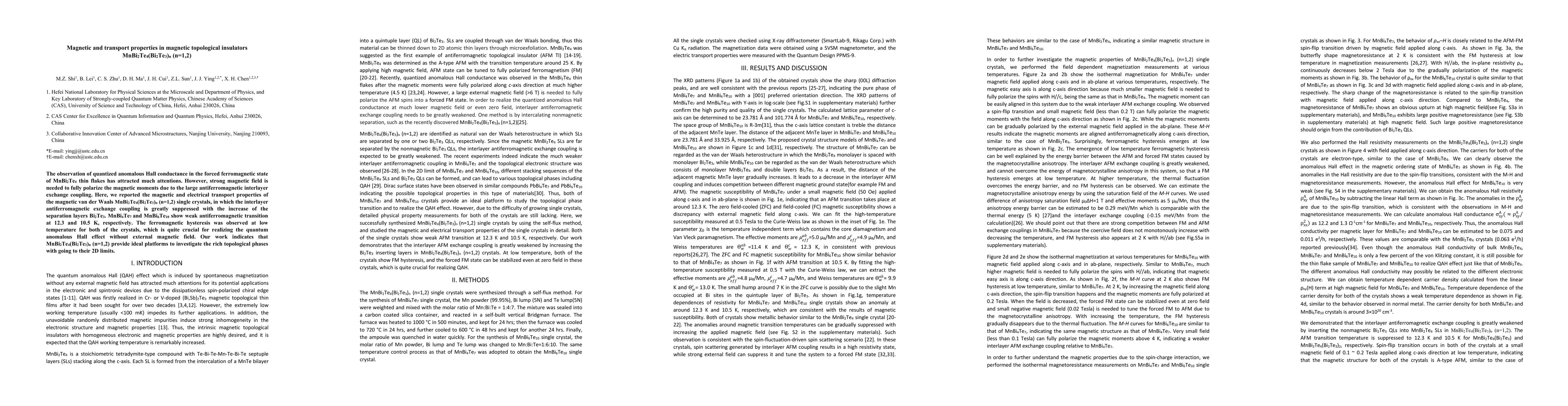 Researchers investigated magnetic topological insulators MnBi2Te4(Bi2Te3)n, finding that increasing the separation layers suppresses antiferromagnetic exchange coupling, allowing ferromagnetic hysteresis at low temperatures. This enables the quantum anomalous Hall effect without external magnetic fields.