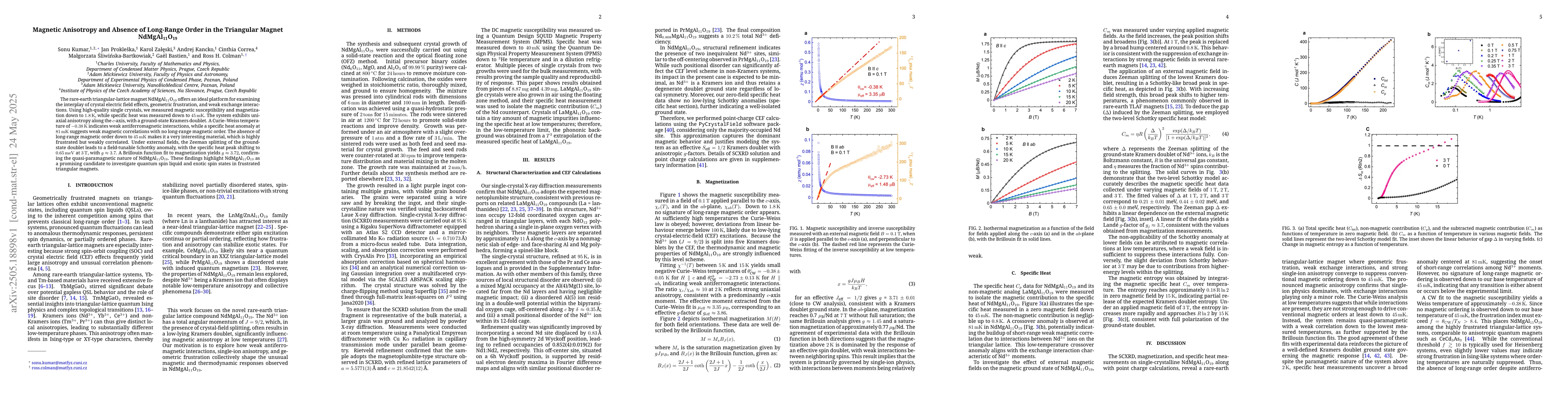 The paper presents detailed magnetic susceptibility, magnetization, and specific heat measurements, revealing the unique magnetic properties of NdMgAl11O19.