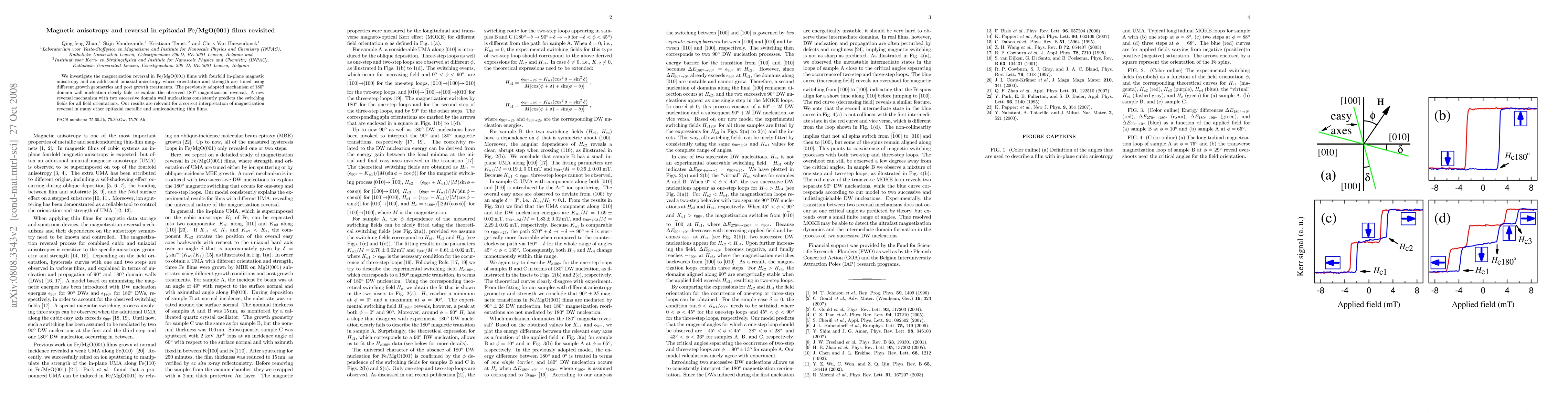 This paper investigates magnetization reversal in Fe/MgO(001) films, revealing that a new mechanism involving two successive domain wall nucleations better explains observed reversals than the previously adopted 180° domain wall nucleation model. The findings are significant for understanding magnetization reversal in various epitaxial metallic and semiconducting thin films.