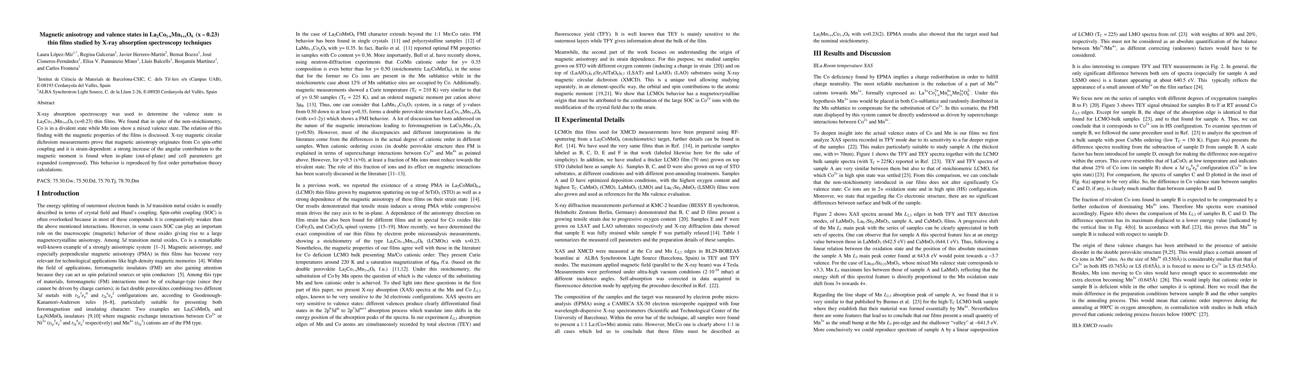 This study uses X-ray absorption spectroscopy to reveal that Co in La$_2$Co$_{1-x}$Mn$_{1+x}$O$_6$ ($x\approx 0.23$) thin films is divalent while Mn exhibits mixed valence states. Magnetic anisotropy is attributed to Co spin-orbit coupling, showing a strain-dependent behavior.