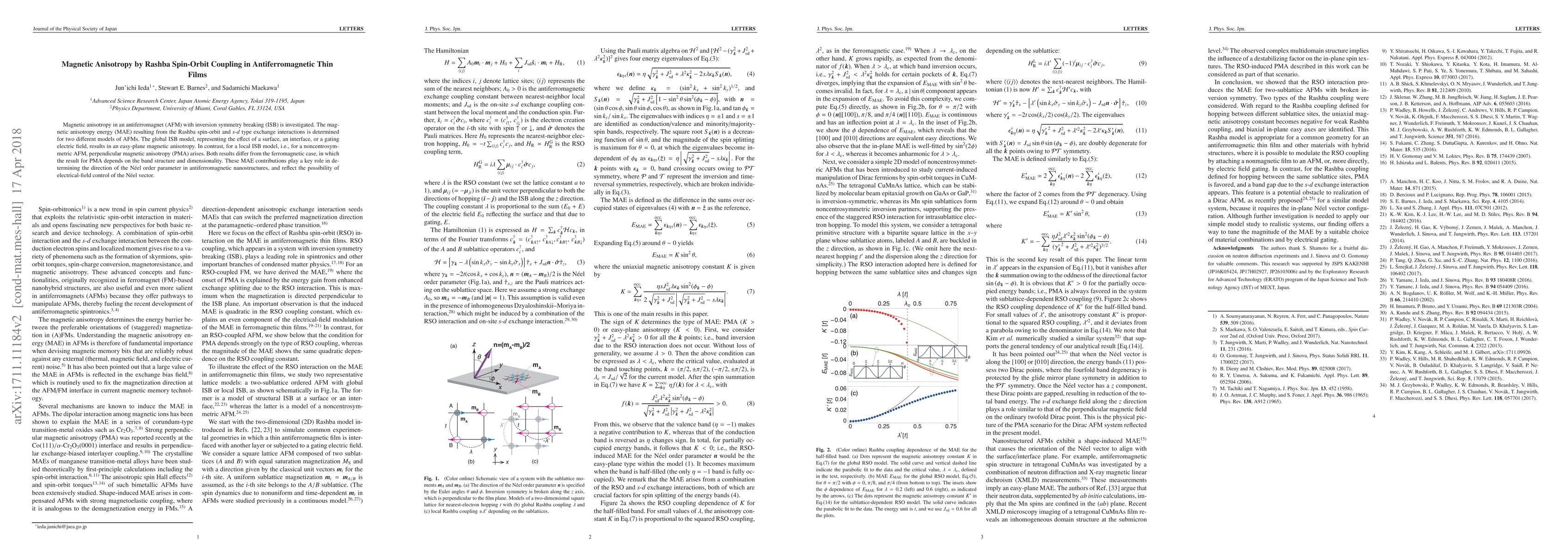 Research investigates magnetic anisotropy in antiferromagnetic thin films, finding that Rashba spin-orbit coupling can lead to easy-plane or perpendicular magnetic anisotropy depending on the type of inversion symmetry breaking.