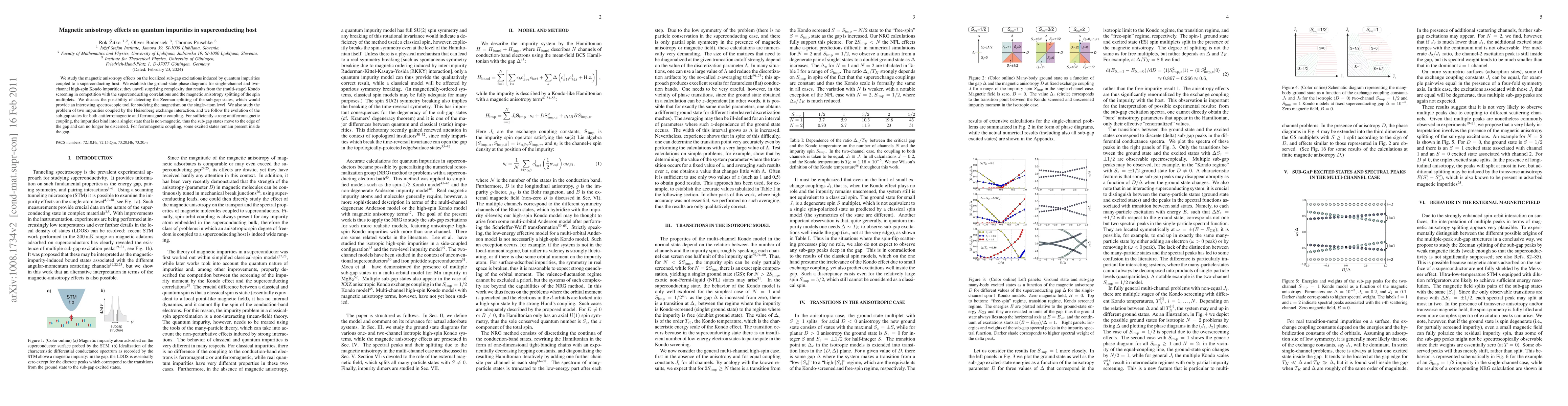 This paper investigates the magnetic anisotropy's impact on quantum impurities in superconducting hosts, revealing complex ground-state phase diagrams due to competing Kondo screening and superconducting correlations. It also explores the potential spectroscopic detection of Zeeman splitting in sub-gap states and the behavior of two coupled impurities under different exchange interactions.