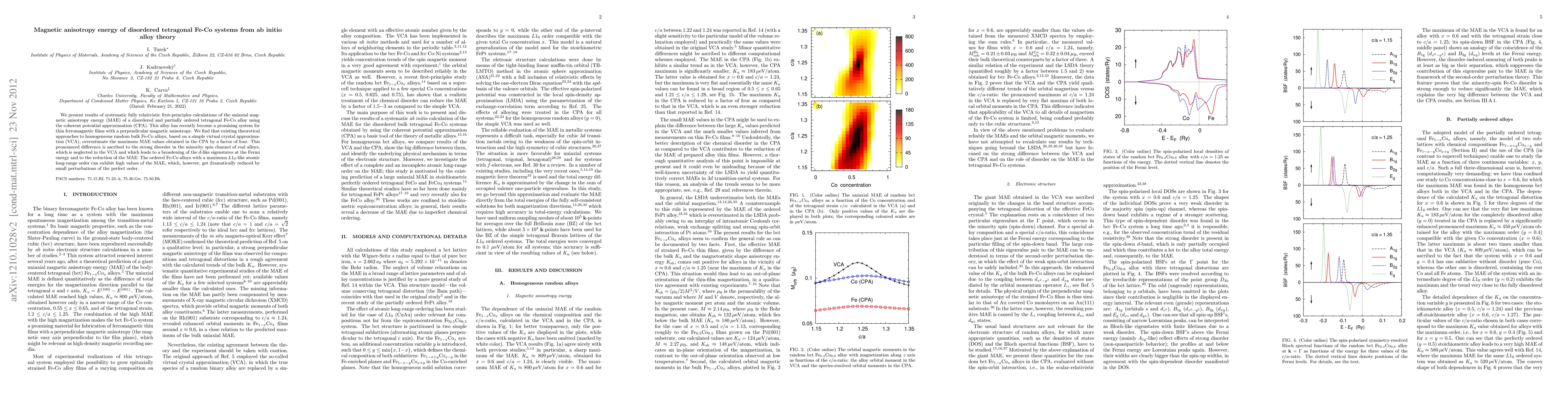This paper uses ab initio calculations to determine the magnetic anisotropy energy of disordered tetragonal Fe-Co alloys, revealing that the virtual crystal approximation overestimates the uniaxial magnetic anisotropy energy by a factor of four due to neglecting the strong disorder in the minority spin channel. Ordered Fe-Co alloys show high MAE values, but these are significantly reduced by even minor structural imperfections.
