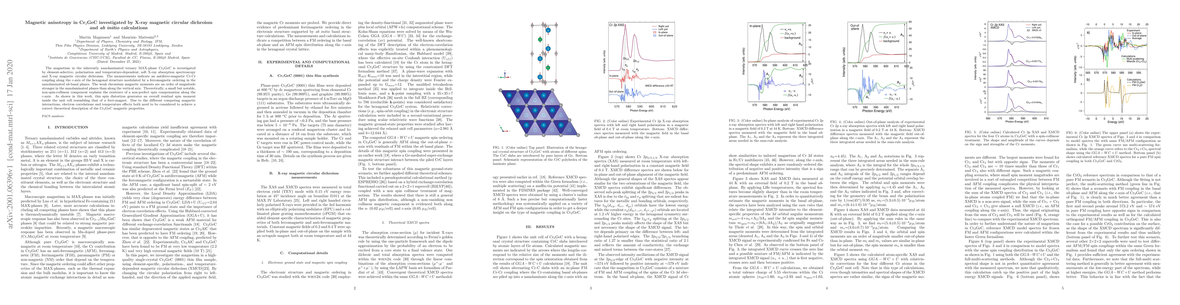 This study investigates the magnetic anisotropy in Cr$_2$GeC using X-ray magnetic circular dichroism and \textit{ab initio} calculations, revealing antiferromagnetic Cr-Cr coupling along the $c$-axis and ferromagnetic ordering in the $ab$-basal planes, with a residual spin moment due to spin distortion. Theoretical models must account for electron correlations and temperature effects for accurate predictions.