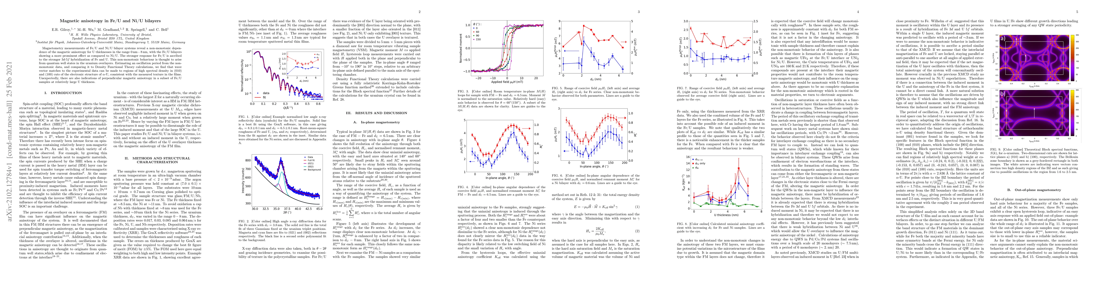 Research on Fe/U and Ni/U bilayer systems reveals non-monotonic magnetic anisotropy dependence with stronger effect in Fe/U due to 3d-5f hybridization, contradicting expectations of monotonic behavior.