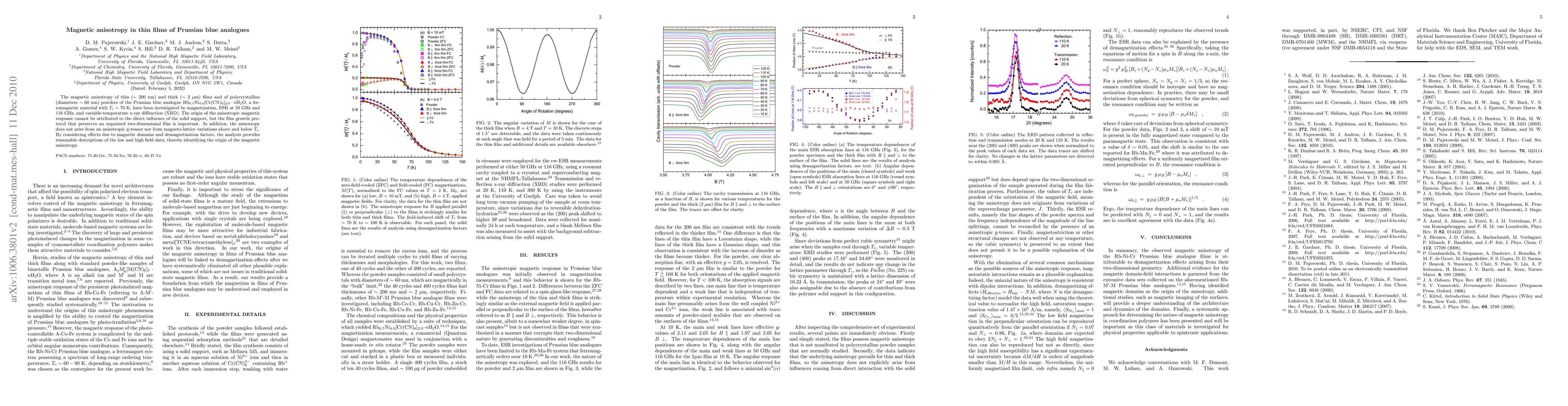 Researchers investigated magnetic anisotropy in thin films of Prussian blue analogues, finding that film growth protocol, not solid support or g-tensor variation, contributes to the anisotropic response.