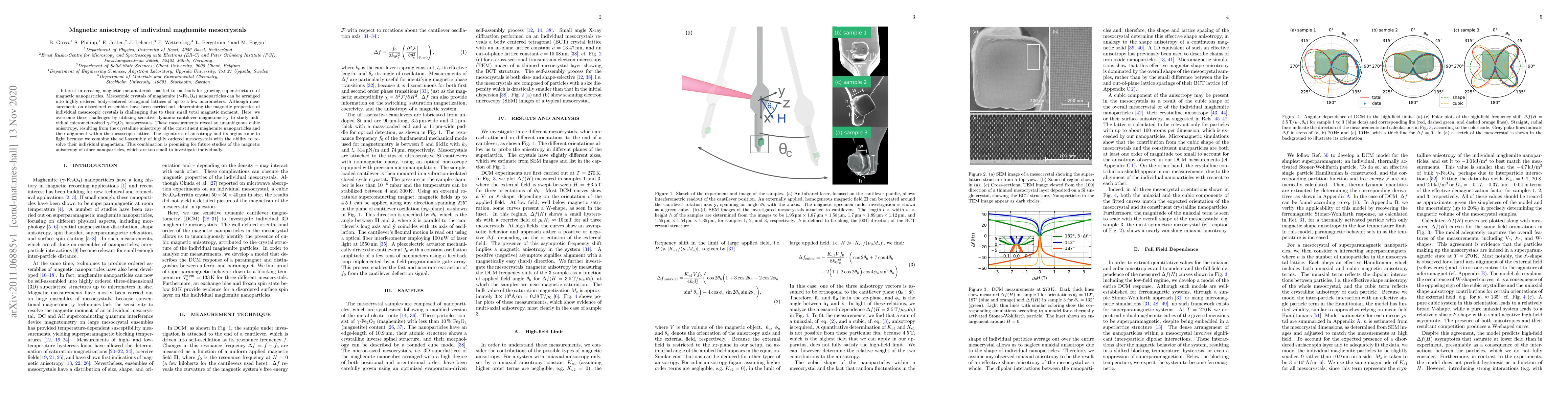 Interest in creating magnetic metamaterials has led to methods for growing superstructures of magnetic nanoparticles. Mesoscopic crystals of maghemite ($\gamma\text{-Fe}_2\text{O}_3$) nanoparticles can be arranged into highly ordered body-centered tetragonal lattices of up to a few micrometers. Although measurements on disordered ensembles have been carried out, determining the magnetic properties of individual mesoscopic crystals is challenging due to their small total magnetic moment. Here, we overcome these challenges by utilizing sensitive dynamic cantilever magnetometry to study individual micrometer-sized $\gamma\text{-Fe}_2\text{O}_3$ mesocrystals. These measurements reveal an unambiguous cubic anisotropy, resulting from the crystalline anisotropy of the constituent maghemite nanoparticles and their alignment within the mesoscopic lattice. The signatures of anisotropy and its orgins come to light because we combine the self-assembly of highly ordered mesocrystals with the ability to resolve their individual magnetism. This combination is promising for future studies of the magnetic anisotropy of other nanoparticles, which are too small to investigate individually.