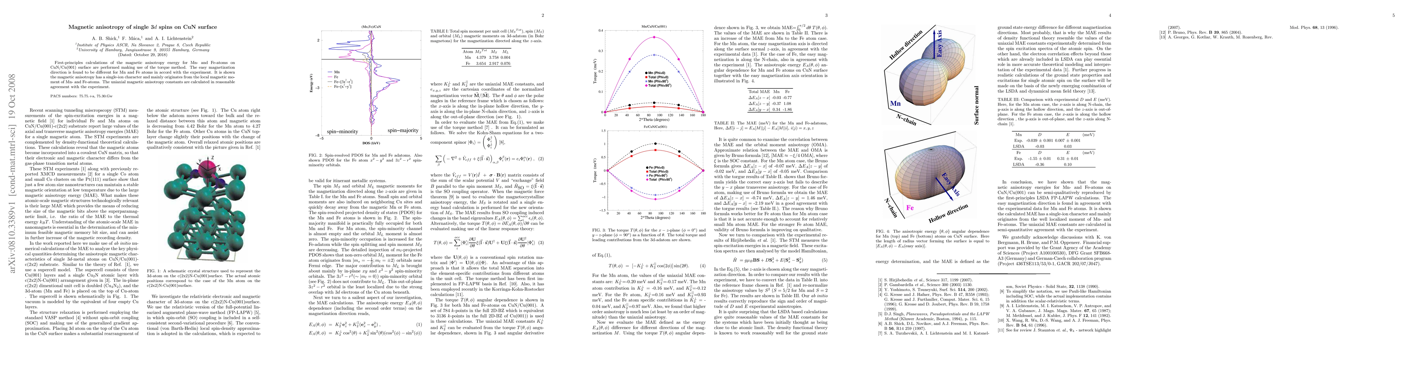 This paper uses first-principles calculations to study the magnetic anisotropy of Mn and Fe atoms on a CuN/Cu(001) surface, revealing different easy magnetization directions for Mn and Fe, and confirming that the anisotropy primarily stems from the local magnetic moments of these atoms. The calculated uniaxial anisotropy constants align well with experimental data.
