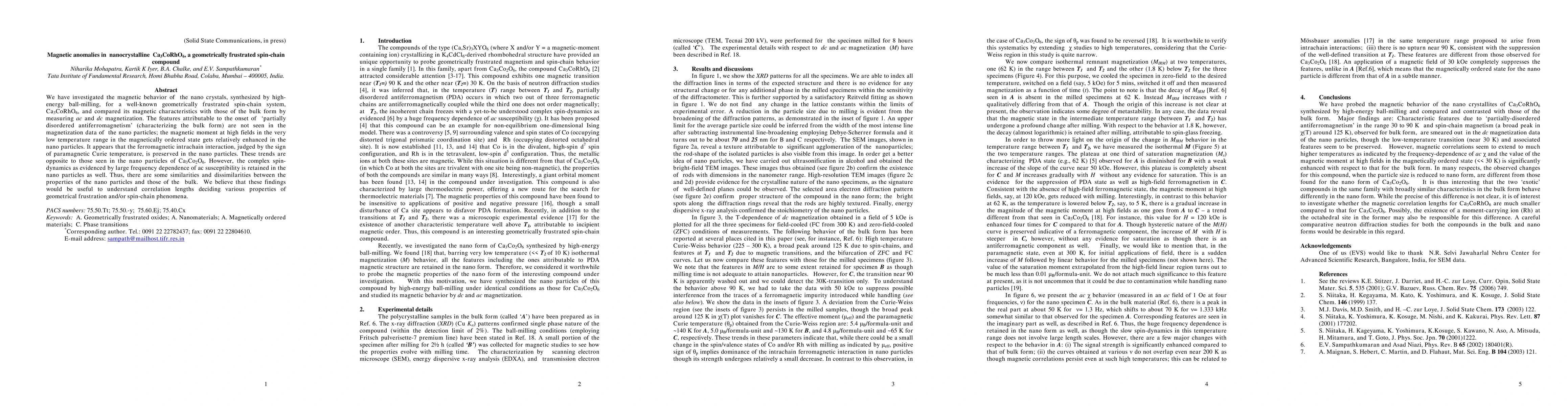 We have investigated the magnetic behavior of the nano crystals, synthesized by high-energy ball-milling, for a well-known geometrically frustrated spin-chain system, Ca3CoRhO6, and compared its magnetic characteristics with those of the bulk form by measuring ac and dc magnetization. The features attributable to the onset of 'partially disordered antiferromagnetism' (characterizing the bulk form) are not seen in the magnetization data of the nano particles; the magnetic moment at high fields in the very low temperature range in the magnetically ordered state gets relatively enhanced in the nano particles. It appears that the ferromagnetic intrachain interaction, judged by the sign of the paramagnetic Curie temperature, is preserved in the nano particles. These trends are opposite to those seen in Ca3Co2O6. However, the complex spin-dynamics as evidenced by large frequency dependence of ac susceptibility is retained in the nano particles as well. Thus, there are some similarities and dissimilarities between the properties of the nano particles and those of the bulk. We believe that these findings would be useful to understand correlation lengths deciding various properties of geometrical frustration and/or spin-chain phenomena.