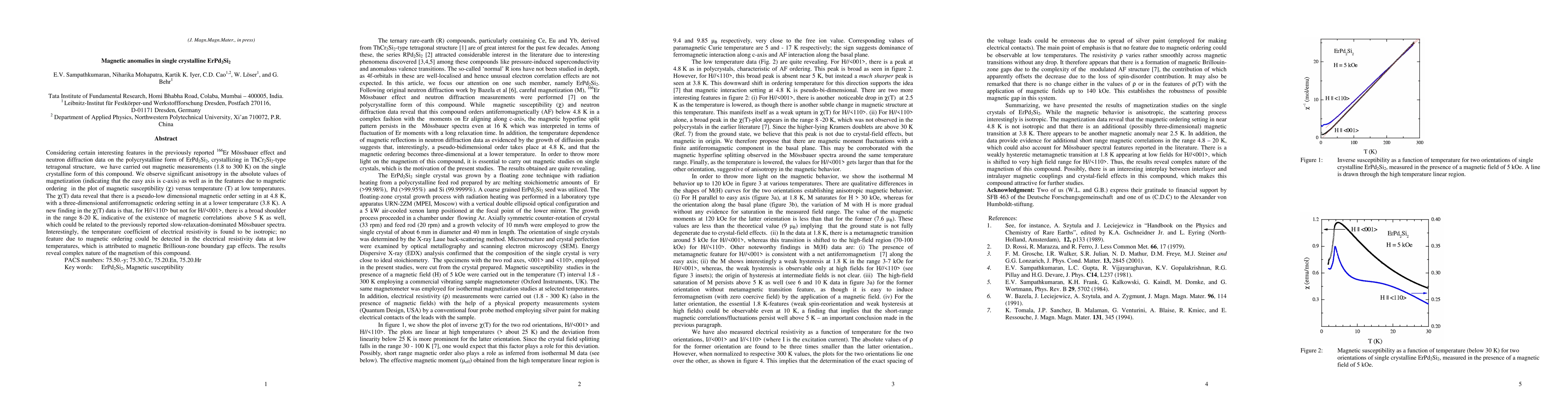 The study investigates the magnetic properties of single crystalline ErPd2Si2, observing significant magnetic anisotropy and pseudo-low dimensional magnetic order at 4.8 K, followed by three-dimensional antiferromagnetic ordering at 3.8 K. Magnetic correlations above 5 K are noted for certain field orientations. Interestingly, electrical resistivity data show isotropic temperature coefficient and no magnetic ordering features, attributed to magnetic Brillouin-zone boundary gap effects. The findings highlight the complex magnetic nature of ErPd2Si2.