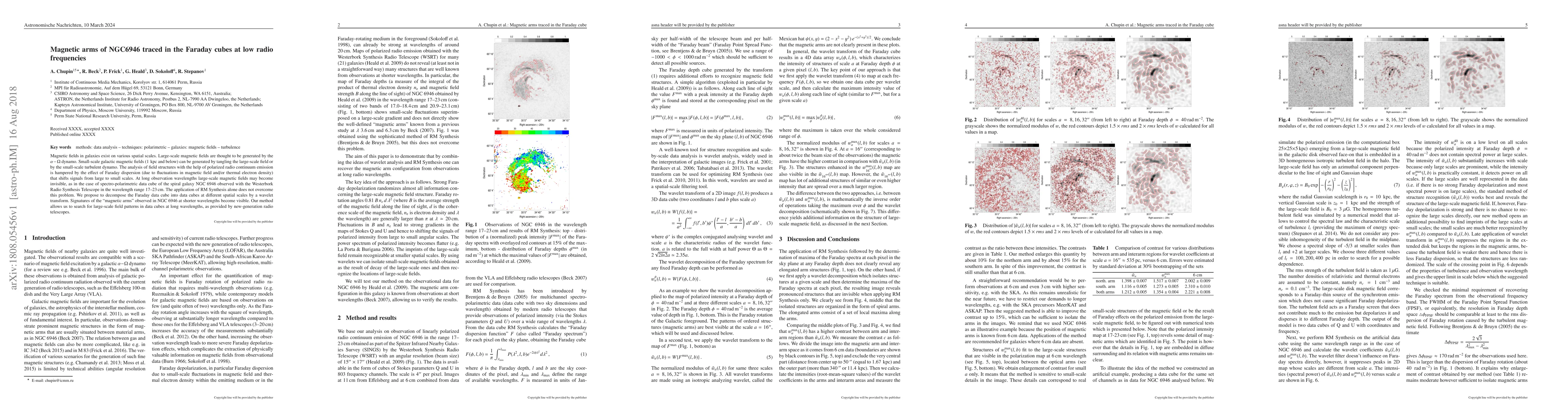 Magnetic fields in galaxies exist on various spatial scales. Large-scale magnetic fields are thought to be generated by the $\alpha-\Omega$ dynamo. Small-scale galactic magnetic fields (1 kpc and below) can be generated by tangling the large-scale field or by the small-scale turbulent dynamo. The analysis of field structures with the help of polarized radio continuum emission is hampered by the effect of Faraday dispersion (due to fluctuations in magnetic field and/or thermal electron density) that shifts signals from large to small scales. At long observation wavelengths large-scale magnetic fields may become invisible, as in the case of spectro-polarimetric data cube of the spiral galaxy NGC~6946 observed with the Westerbork Radio Synthesis Telescope in the wavelength range 17-23 cm. The application of RM Synthesis alone does not overcome this problem. We propose to decompose the Faraday data cube into data cubes at different spatial scales by a wavelet transform. Signatures of the `magnetic arms' observed in NGC~6946 at shorter wavelengths become visible. Our method allows us to search for large-scale field patterns in data cubes at long wavelengths, as provided by new-generation radio telescopes.