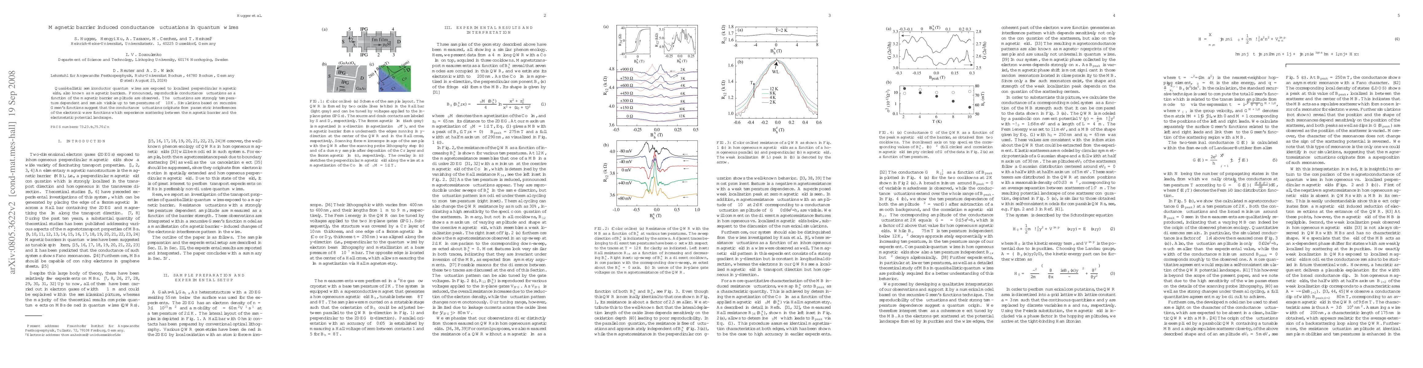 Summary: Conductance fluctuations in quasi-ballistic semiconductor quantum wires subjected to perpendicular magnetic barriers display strong temperature dependence and originate from parametric interferences between scattered electronic wave functions, as indicated by recursive Green function simulations.