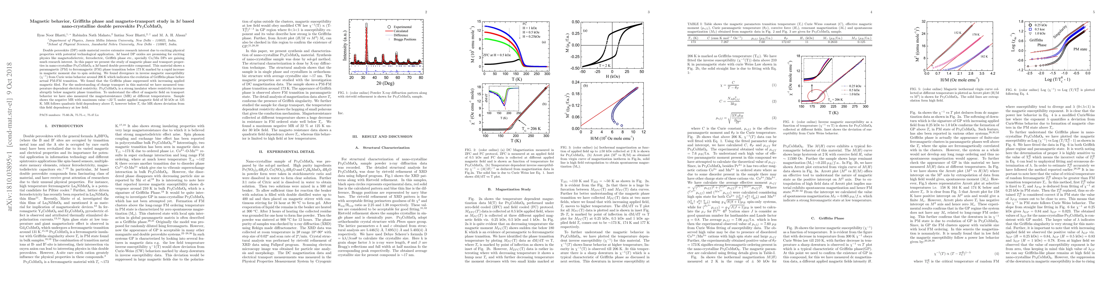 This paper investigates the magnetic and transport properties of nano-crystalline Pr$_2$CoMnO$_6$, a 3$d$ based double perovskite. It reveals a PM to FM transition at 173 K, a Griffiths phase emergence at 206 K, and negative magnetoresistance up to 22% under a 50 kOe magnetic field at 125 K.
