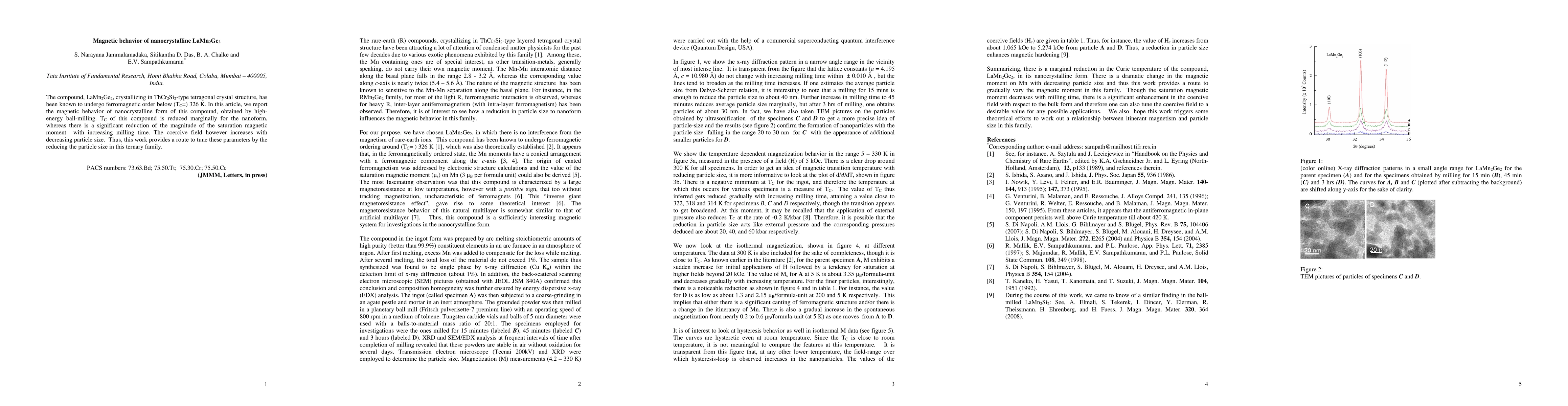 The compound, LaMn2Ge2, crystallizing in ThCr2Si2-type tetragonal crystal structure, has been known to undergo ferromagnetic order below (T_C=) 326 K. In this article, we report the magnetic behavior of nanocrystalline form of this compound, obtained by high-energy ball-milling. T_C of this compound is reduced maginally for the nanoform, whereas there is a significant reduction of the magnitude of the saturation magnetic moment with increasing milling time. The coercive field however increases with decreasing particle size. Thus, this work provides a route to tune these parameters by reducing the particle size in this ternary family.