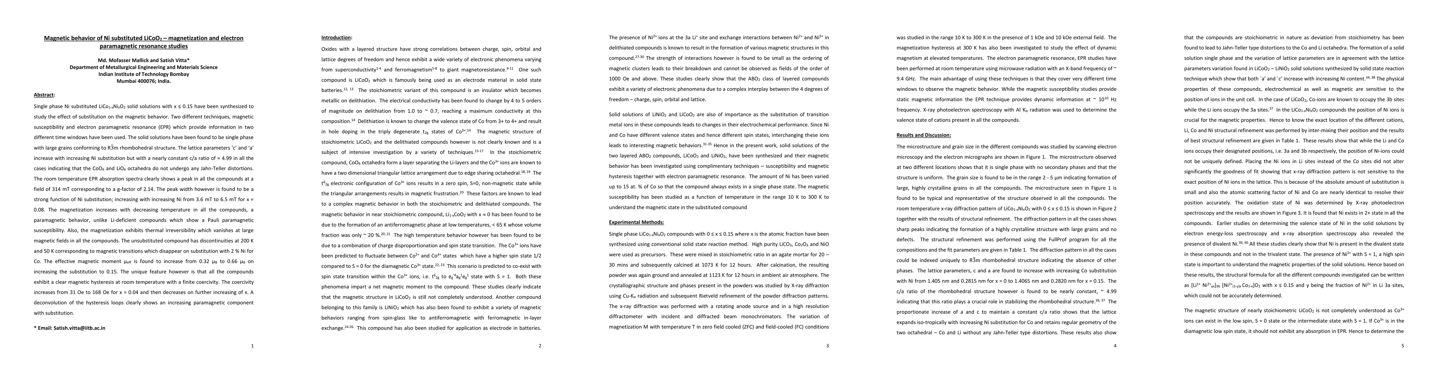 This study investigates the magnetic behavior of Ni substituted LiCoO2 using magnetic susceptibility and electron paramagnetic resonance (EPR) techniques. The results show that Ni substitution leads to a paramagnetic behavior with a clear magnetic hysteresis at room temperature, and the effective magnetic moment increases with substitution.