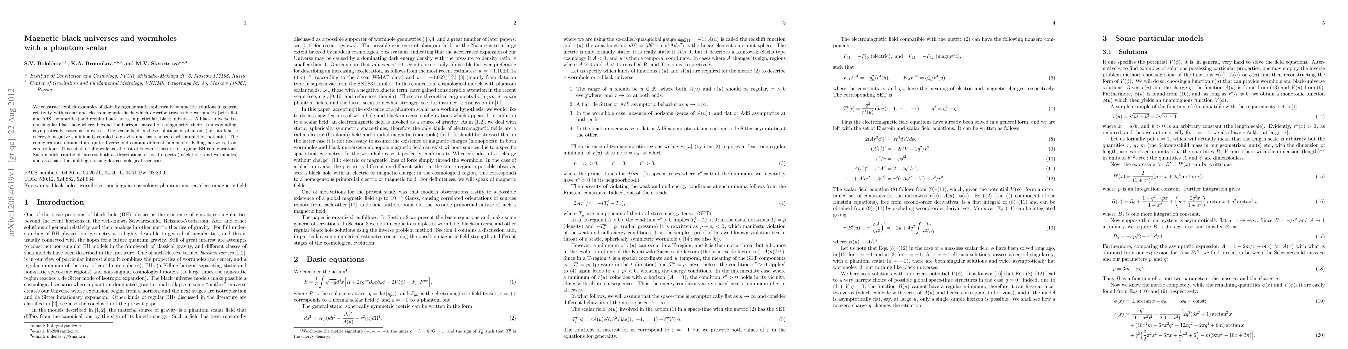 We construct explicit examples of globally regular static, spherically symmetric solutions in general relativity with scalar and electromagnetic fields which describe traversable wormholes (with flat and AdS asymptotics) and regular black holes, in particular, black universes. A black universe is a nonsingular black hole where, beyond the horizon, instead of a singularity, there is an expanding, asymptotically isotropic universe. The scalar field in these solutions is phantom (i.e., its kinetic energy is negative), minimally coupled to gravity and has a nonzero self-interaction potential. The configurations obtained are quite diverse and contain different numbers of Killing horizons, from zero to four. This substantially widens the list of known structures of regular black hole configurations. Such models can be of interest both as descriptions of local objects (black holes and wormholes) and as a basis for building nonsingular cosmological scenarios.