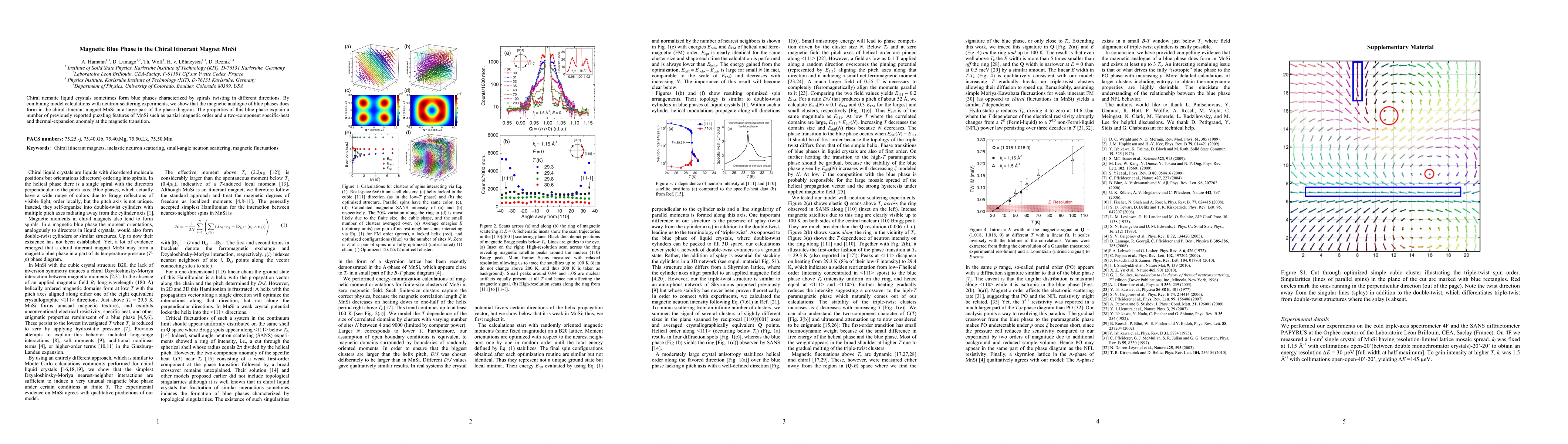 This study reveals that the chiral itinerant magnet MnSi exhibits a magnetic blue phase, explaining previous anomalies like partial magnetic order and dual specific-heat and thermal-expansion anomalies. This magnetic analogue is identified through a combination of theoretical modeling and neutron-scattering experiments.