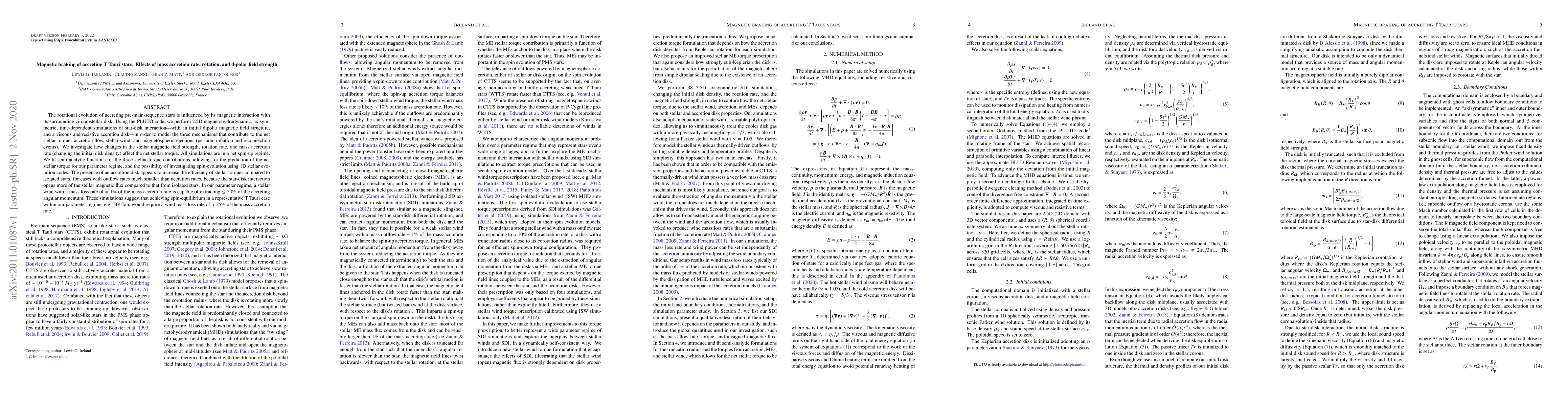 The rotational evolution of accreting pre-main-sequence stars is influenced by its magnetic interaction with its surrounding circumstellar disk. Using the PLUTO code, we perform 2.5D magnetohydrodynamic, axisymmetric, time-dependent simulations of star-disk interaction---with an initial dipolar magnetic field structure, and a viscous and resistive accretion disk---in order to model the three mechanisms that contribute to the net stellar torque: accretion flow, stellar wind, and magnetospheric ejections (periodic inflation and reconnection events). We investigate how changes in the stellar magnetic field strength, rotation rate, and mass accretion rate (changing the initial disk density) affect the net stellar torque. All simulations are in a net spin-up regime. We fit semi-analytic functions for the three stellar torque contributions, allowing for the prediction of the net stellar torque for our parameter regime, and the possibility of investigating spin-evolution using 1D stellar evolution codes. The presence of an accretion disk appears to increase the efficiency of stellar torques compared to isolated stars, for cases with outflow rates much smaller than accretion rates, because the star-disk interaction opens more of the stellar magnetic flux compared to that from isolated stars. In our parameter regime, a stellar wind with a mass loss rate of $\approx 1 \%$ of the mass accretion rate is capable of extracting $\lesssim 50 \%$ of the accreting angular momentum. These simulations suggest that achieving spin-equilibrium in a representative T Tauri case within our parameter regime, e.g., BP Tau, would require a wind mass loss rate of $\approx 25\%$ of the mass accretion rate.