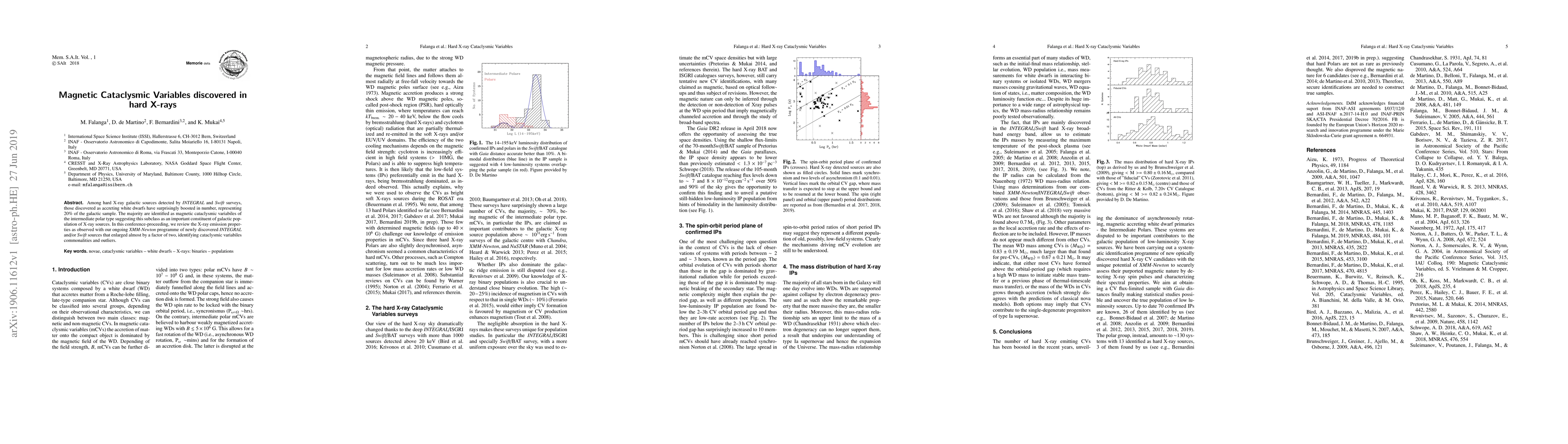 Among hard X-ray galactic sources detected by INTEGRAL and Swift surveys, those discovered as accreting white dwarfs have surprisingly boosted in number, representing 20% of the galactic sample. The majority are identified as magnetic cataclysmic variabiles of the intermediate polar type suggesting this subclass as an important constituent of galactic population of X-ray sources. In this conference-proceeding, we review the X-ray emission properties as observed with our ongoing XMM-Newton programme of newly discovered INTEGRAL and/or Swift sources that enlarged almost by a factor of two, identifying cataclysmic variabiles commonalities and outliers.