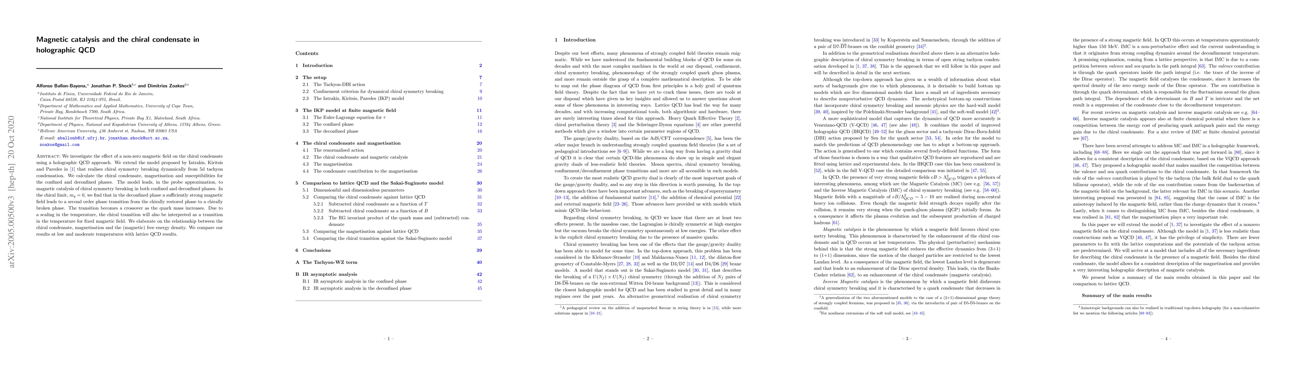 This paper explores the impact of a non-zero magnetic field on the chiral condensate using holographic QCD, finding magnetic catalysis in both confined and deconfined phases. It reveals a second-order phase transition in the deconfined phase for strong magnetic fields, which becomes a crossover with increasing quark mass, and compares results with lattice QCD.