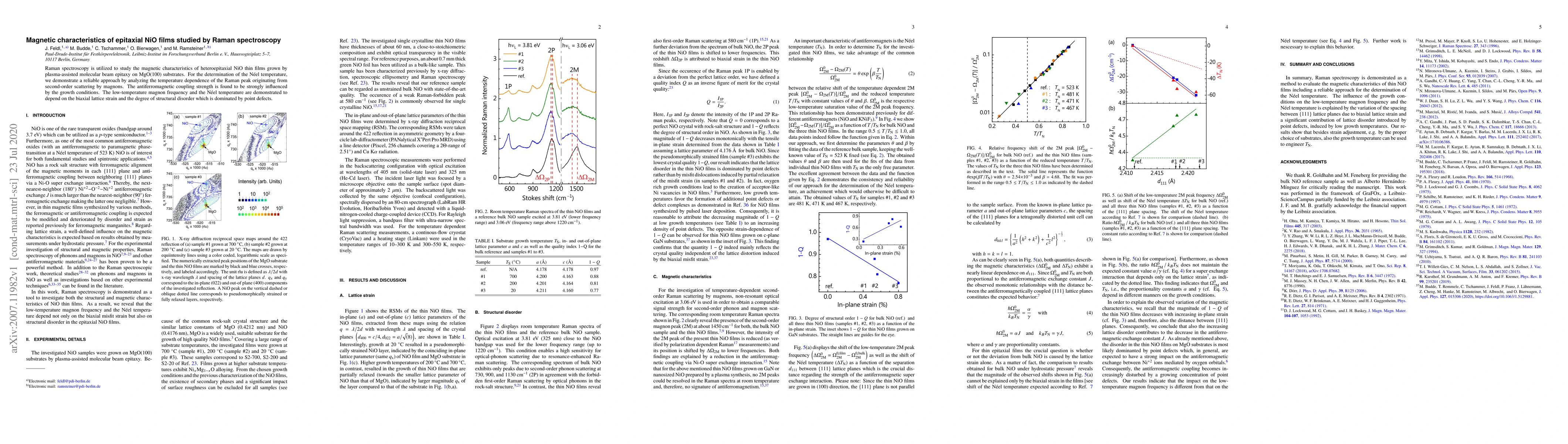 This study uses Raman spectroscopy to analyze magnetic properties of NiO thin films grown on MgO(100) substrates. It reveals that strain, biaxial lattice, and point defects significantly influence the antiferromagnetic coupling strength, low-temperature magnon frequency, and Néel temperature, all of which are determined by the growth conditions.