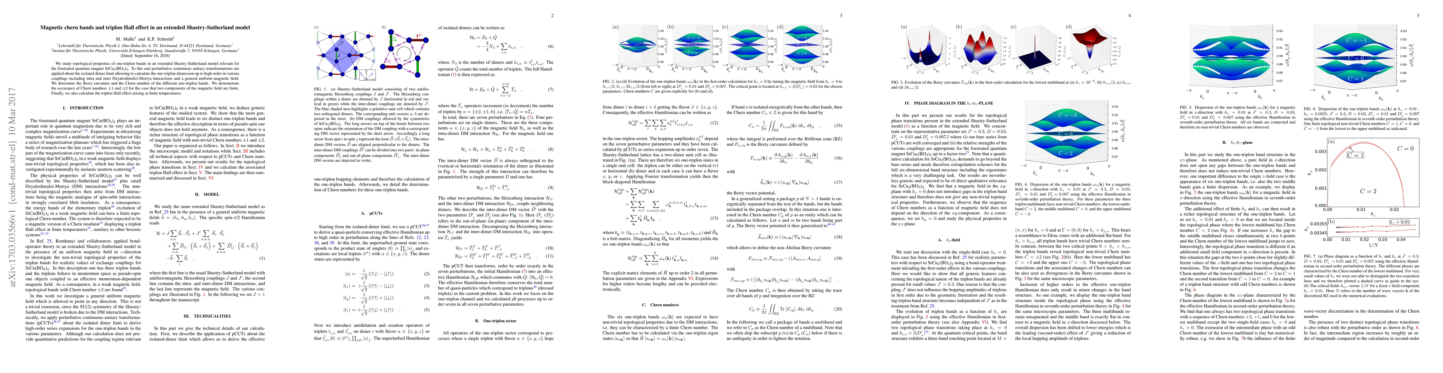 This paper investigates topological properties of one-triplon bands in an extended Shastry-Sutherland model, determining Chern numbers and demonstrating the triplon Hall effect, revealing magnetic Chern bands and their implications for the frustrated quantum magnet SrCu_2(BO_3)_2.