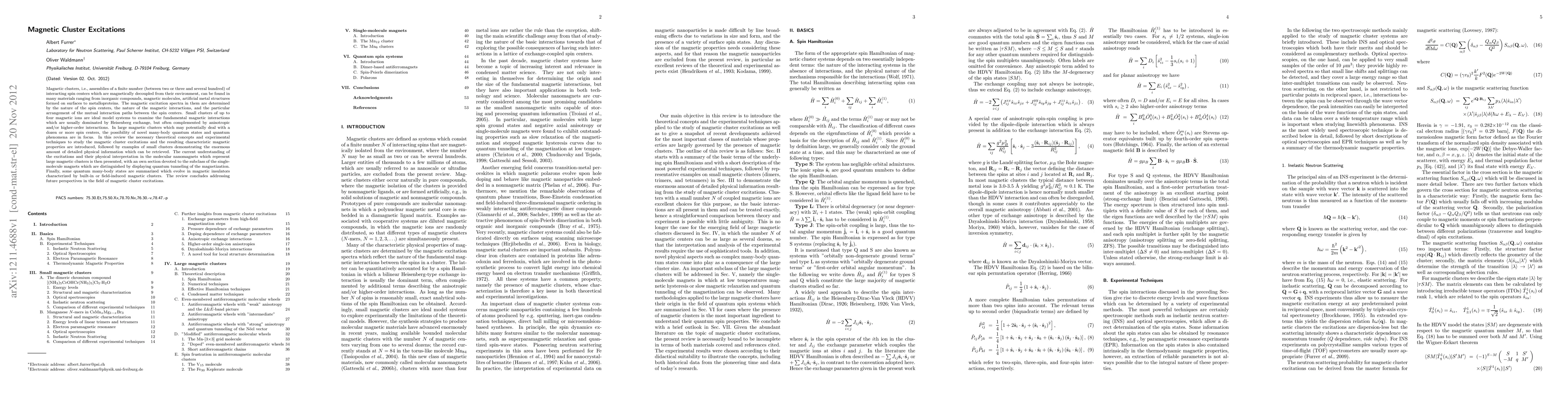 Magnetic clusters, i.e., assemblies of a finite number (between two or three and several hundred) of interacting spin centers which are magnetically decoupled from their environment, can be found in many materials ranging from inorganic compounds, magnetic molecules, artificial metal structures formed on surfaces to metalloproteins. The magnetic excitation spectra in them are determined by the nature of the spin centers, the nature of the magnetic interactions, and the particular arrangement of the mutual interaction paths between the spin centers. Small clusters of up to four magnetic ions are ideal model systems to examine the fundamental magnetic interactions which are usually dominated by Heisenberg exchange, but often complemented by anisotropic and/or higher-order interactions. In large magnetic clusters which may potentially deal with a dozen or more spin centers, the possibility of novel many-body quantum states and quantum phenomena are in focus. In this review the necessary theoretical concepts and experimental techniques to study the magnetic cluster excitations and the resulting characteristic magnetic properties are introduced, followed by examples of small clusters demonstrating the enormous amount of detailed physical information which can be retrieved. The current understanding of the excitations and their physical interpretation in the molecular nanomagnets which represent large magnetic clusters is then presented, with an own section devoted to the subclass of the single-molecule magnets which are distinguished by displaying quantum tunneling of the magnetization. Finally, some quantum many-body states are summarized which evolve in magnetic insulators characterized by built-in or field-induced magnetic clusters. The review concludes addressing future perspectives in the field of magnetic cluster excitations.