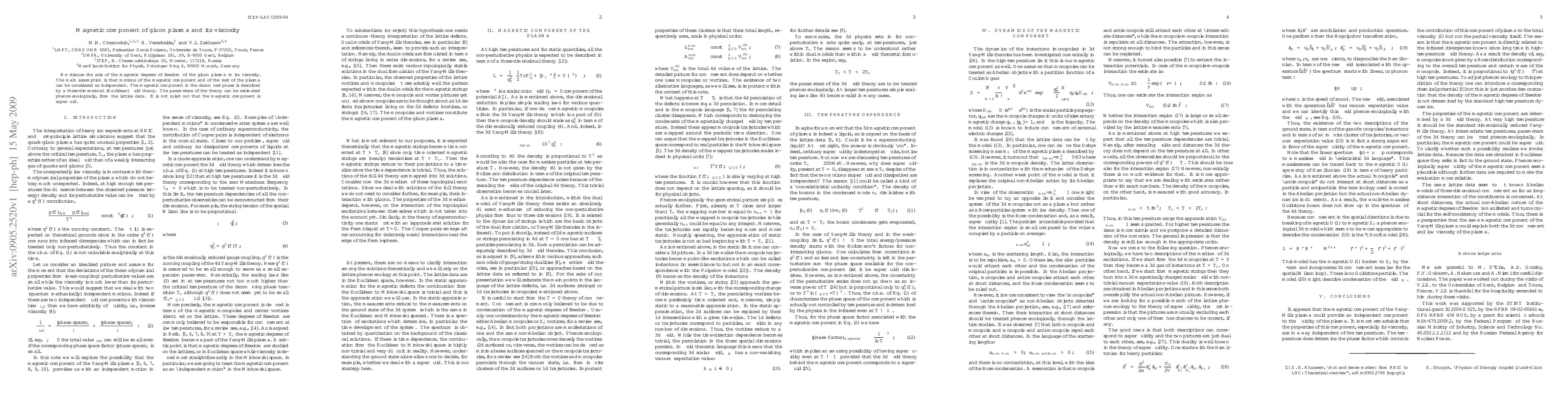 We discuss the role of the magnetic degrees of freedom of the gluon plasma in its viscosity. The main assumption is that motions of the magnetic component and of the rest of the plasma can be considered as independent. The magnetic component in the deconfined phase is described by a three-dimensional (Euclidean) field theory. The parameters of the theory can be estimated phenomenologically, from the lattice data. It is not ruled out that the magnetic component is superfluid.