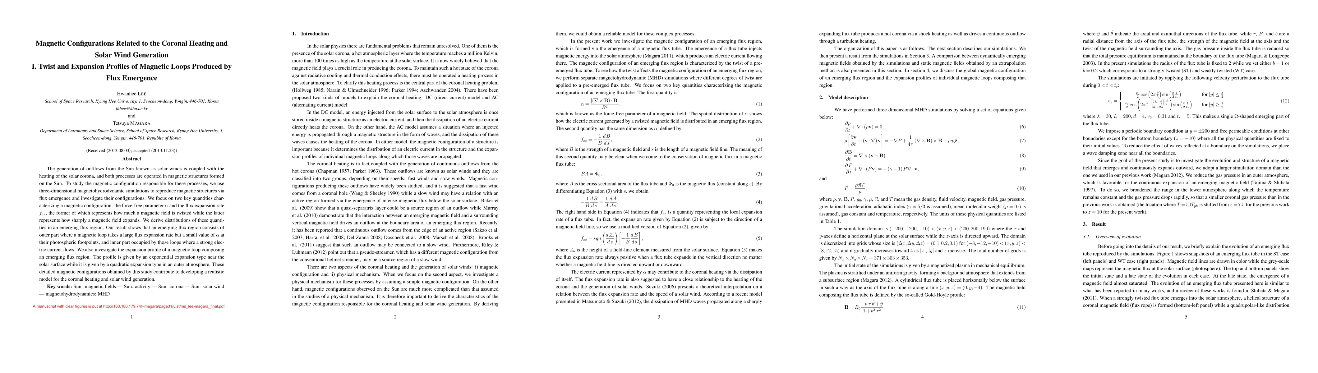 This research uses 3D magnetohydrodynamic simulations to study magnetic configurations formed by flux emergence, focusing on the force-free parameter alpha and flux expansion rate. It reveals that emerging flux regions have large flux expansion rates and low alpha values in outer loops, while inner loops exhibit strong electric currents. The magnetic loop expansion profile transitions from exponential near the solar surface to quadratic in the outer atmosphere.