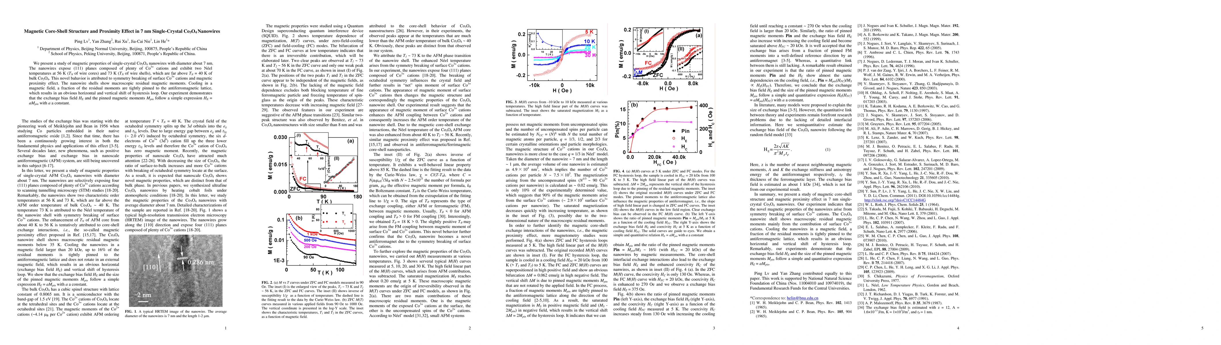 We present a study of magnetic properties of single-crystal Co3O4 nanowires with diameter about 7 nm. The nanowires expose (111) planes composed of plenty of Co3+ cations and exhibit two N\'eel temperatures at 56 K (TN of wire cores) and 73 K (TN of wire shells), which are far above TN = 40 K of bulk Co3O4. This novel bahavior is attributed to symmetry breaking of surface Co3+ cations and magnetic proximity effect. The nanowire shells show macroscopic residual magnetic moments. Cooling in a magnetic field, a fraction of the residual moments are tightly pinned to the antiferromagnetic lattice, which results in an obvious horizontal and vertical shift of hysteresis loop. Our experiment demonstrates that the exchange bias field HE and the pinned magnetic moments Mpin follow a simple expression HE = aMpin with a a constant.
