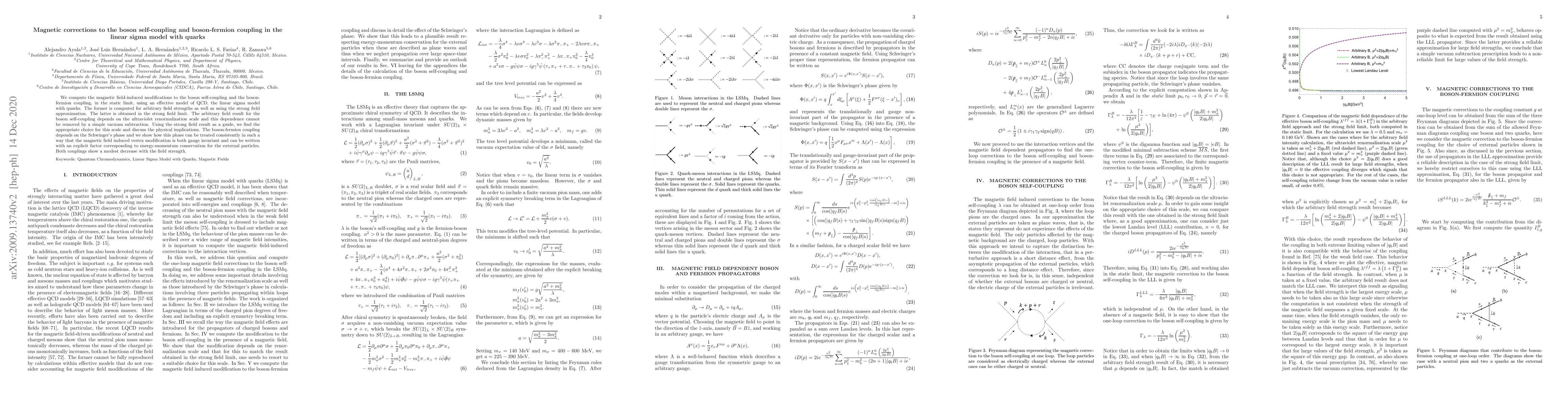 We compute the magnetic field-induced modifications to the boson self-coupling and the boson-fermion coupling, in the static limit, using an effective model of QCD, the linear sigma model with quarks. The former is computed for arbitrary field strengths as well as using the strong field approximation. The latter is obtained in the strong field limit. The arbitrary field result for the boson self-coupling depends on the ultraviolet renormalization scale and this dependence cannot be removed by a simple vacuum subtraction. Using the strong field result as a guide, we find the appropriate choice for this scale and discuss the physical implications. The boson-fermion coupling depends on the Schwinger's phase and we show how this phase can be treated consistently in such a way that the magnetic field induced vertex modification is both gauge invariant and can be written with an explicit factor corresponding to energy-momentum conservation for the external particles. Both couplings show a modest decrease with the field strength.
