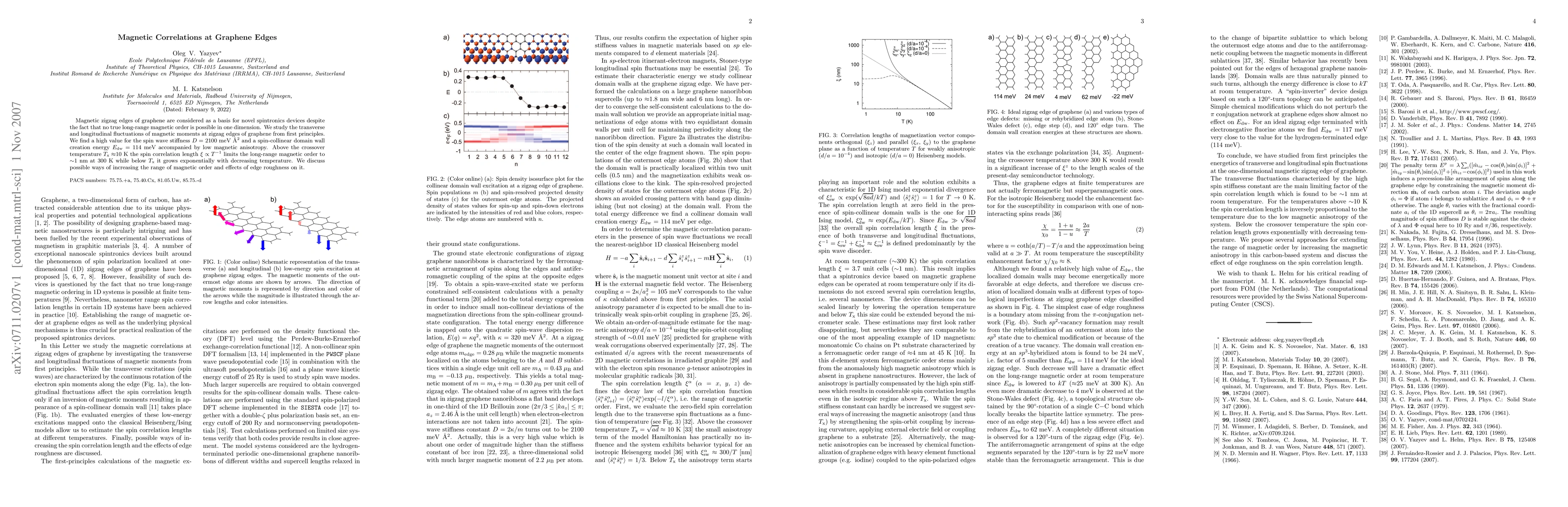 Magnetic zigzag edges of graphene are considered as a basis for novel spintronics devices despite the fact that no true long-range magnetic order is possible in one dimension. We study the transverse and longitudinal fluctuations of magnetic moments at zigzag edges of graphene from first principles. We find a high value for the spin wave stiffness $D$ = 2100 meV \AA$^2$ and a spin-collinear domain wall creation energy $E_dw$ = 114 meV accompanied by low magnetic anisotropy. Above the crossover temperature $T_x \approx$10 K the spin correlation length $\xi \propto T^{-1}$ limits the long-range magnetic order to ~1 nm at 300 K while below $T_x$ it grows exponentially with decreasing temperature. We discuss possible ways of increasing the range of magnetic order and effects of edge roughness on it.